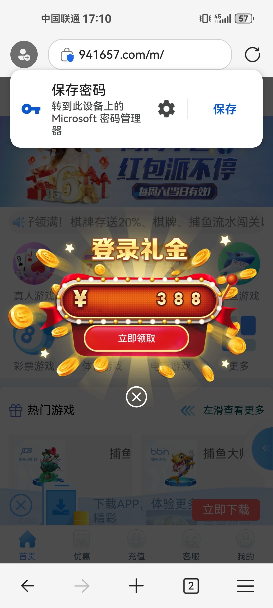 找客服给我送58回馈彩金了