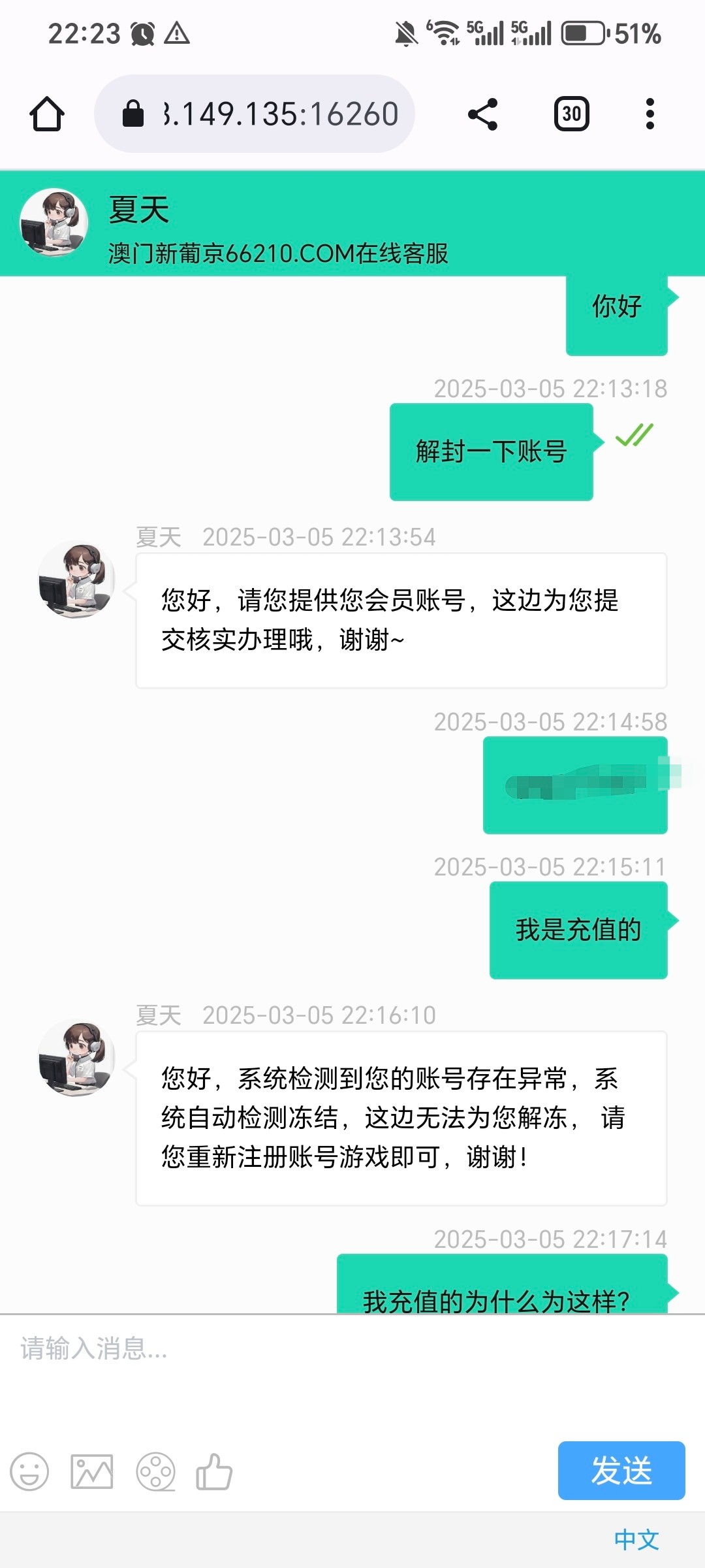 刚注册的号 充值62块 去申请62彩金 然后不通过 这也就算了 点击提现之后直接给我号冻结了...客服说我套利 关键是我也没申请到他们的彩金...太坑人了 兄弟们都小心点吧 这苗头狗庄也没钱了 开始黑款封号了