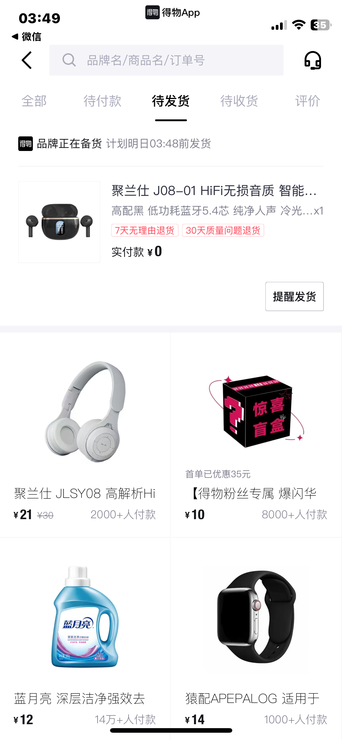 买了十块钱的蓝牙耳机,然后我跟我爷说,我爷说是诈骗,我无语了