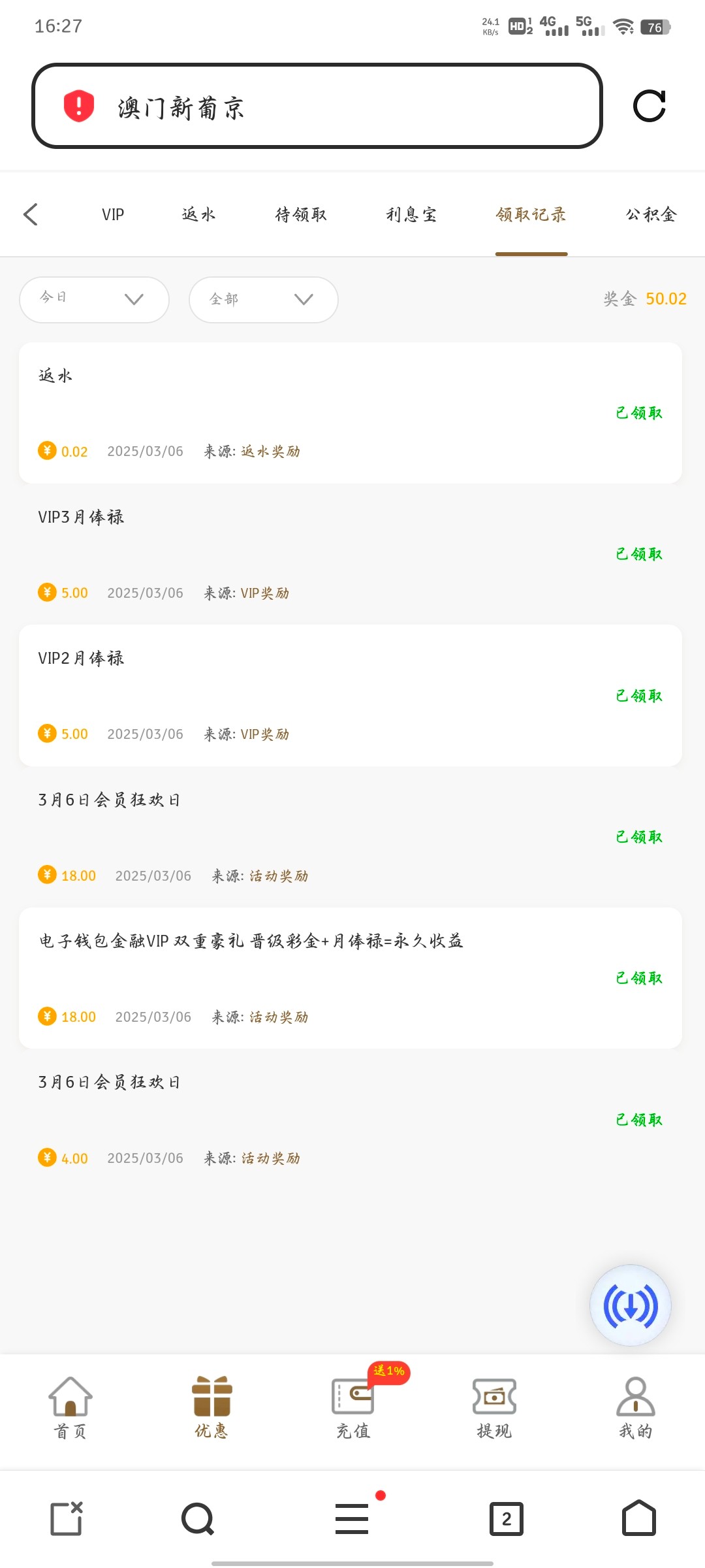 好像3.6号登录才有 我登陆了没有 充值过两三次