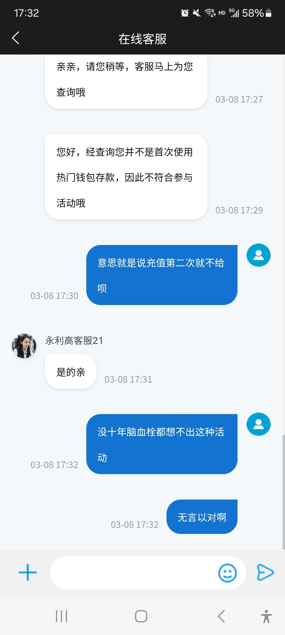 这个台子特邀28出了几百,昨天冲50没水。今天领了58也没水。几把就没了。