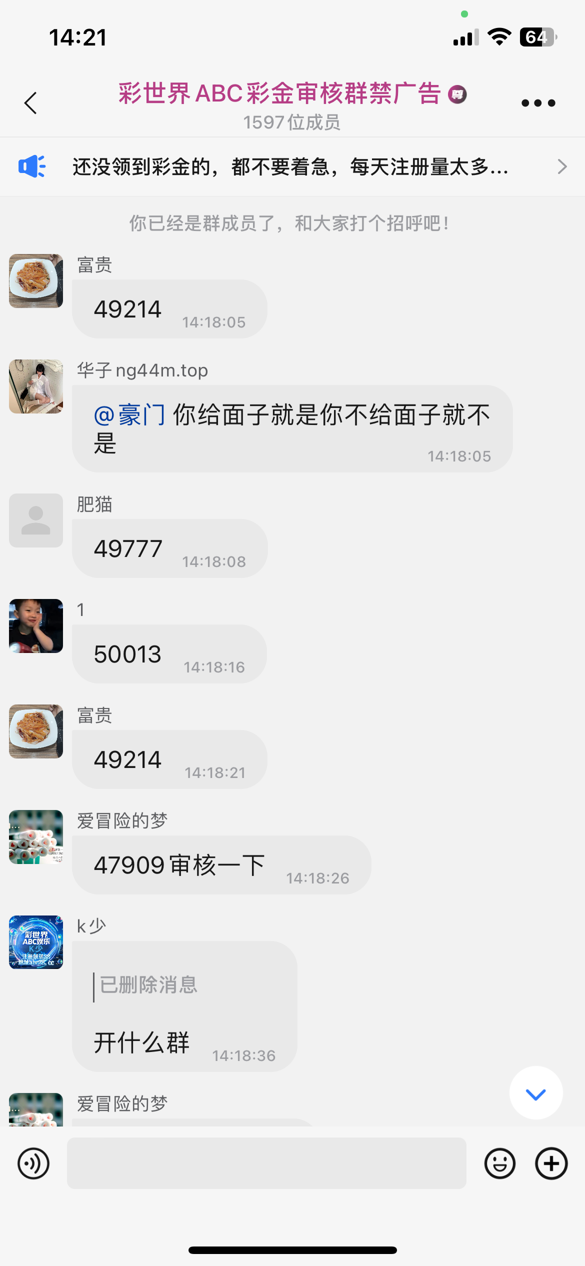 我也撸了100,那个群要注意一下他就开几秒,发的id逐条审核的,最后一条的时候就准备发id,会审核的吧
