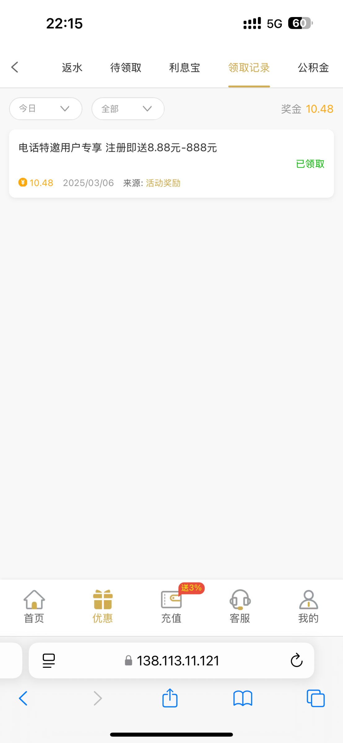 领了9块钱打出来了,感谢楼主,只有白嫖才能赢