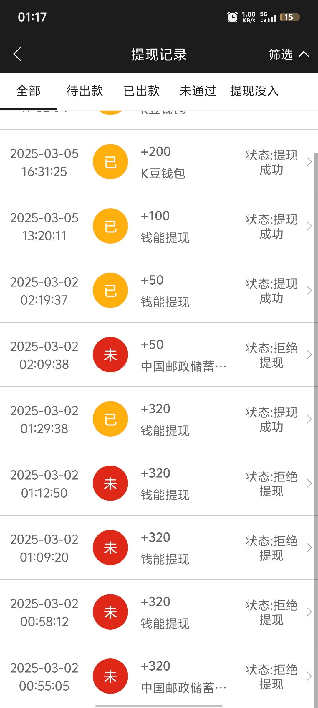 我第一次提款要我支付宝给他卡里转,转了出款了,后面抢红包一块多中个18点也直接提款没要什么了,提的钱能钱包