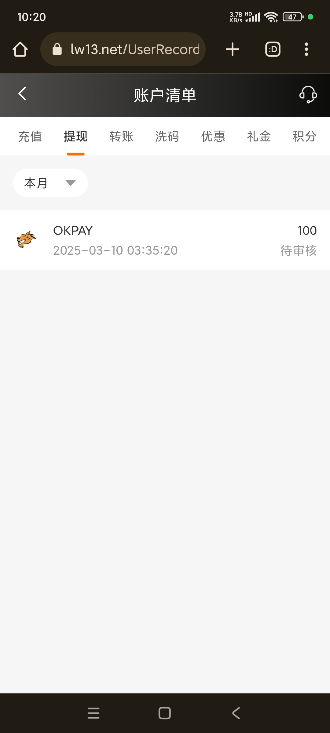 晚上看到乐玩有100送88卷,提200多一直审核,黑了