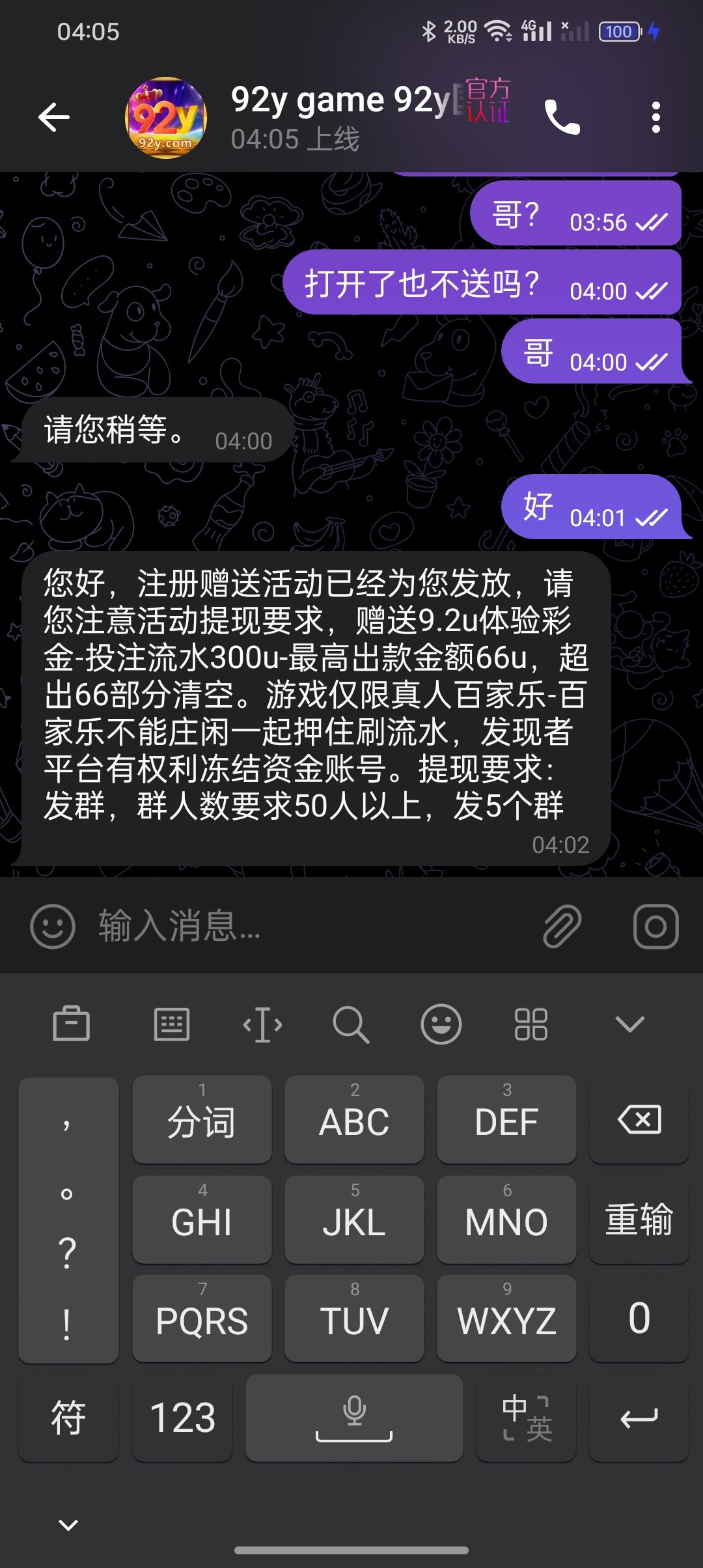 我在打到230u最后一把没了 提现还得转发50人群5个