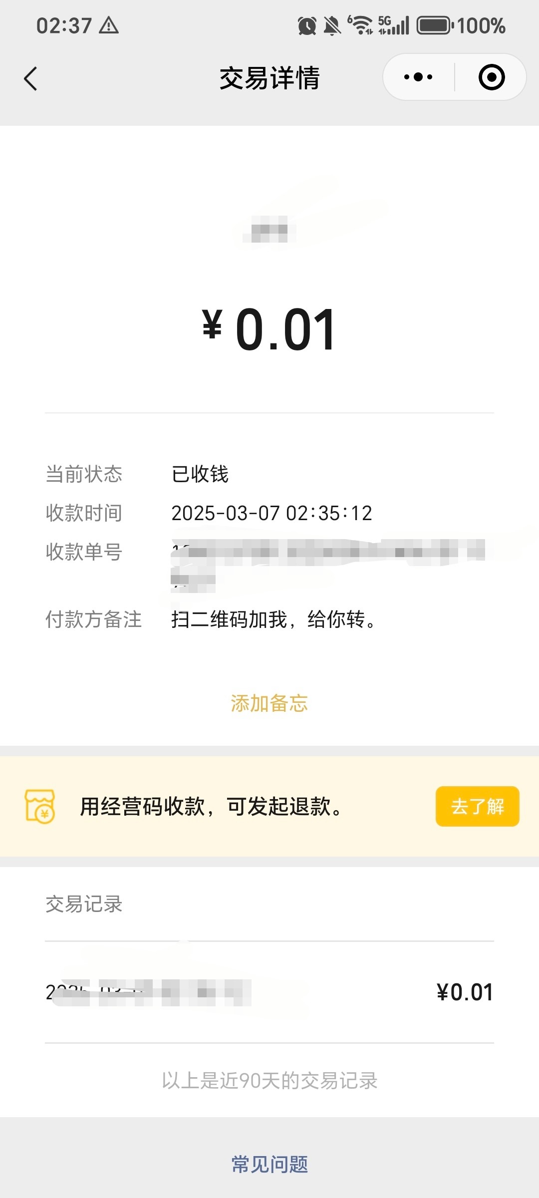 我收款码就是加好友转,微信这样做没问题,收款码有时候收不了,加了可以收