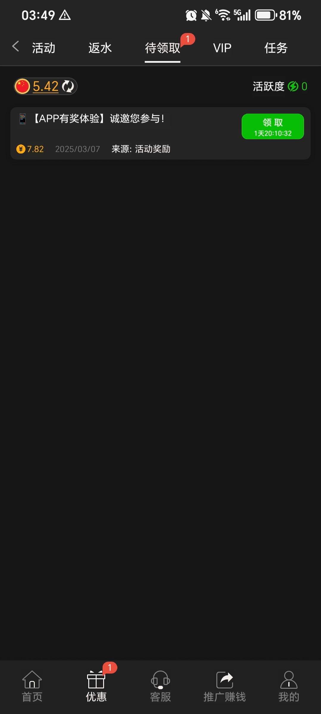 领了4块,进3次胡最高才上到70,后面一直掉没了