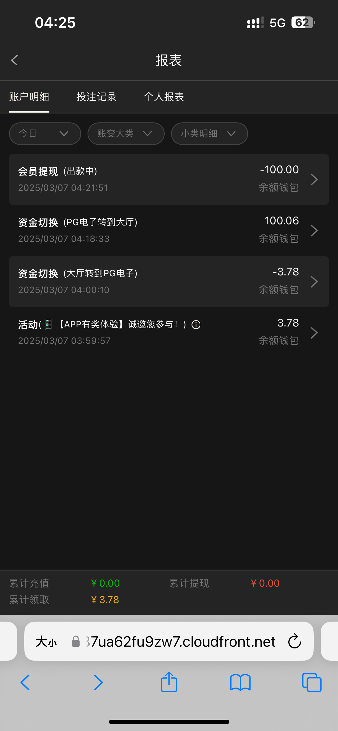 最高打到170,没敢提,然后充了20块提120,之前总共就充了50块,还都出款了,好久没充了,每天都领红包玩,这台自小福利总有。