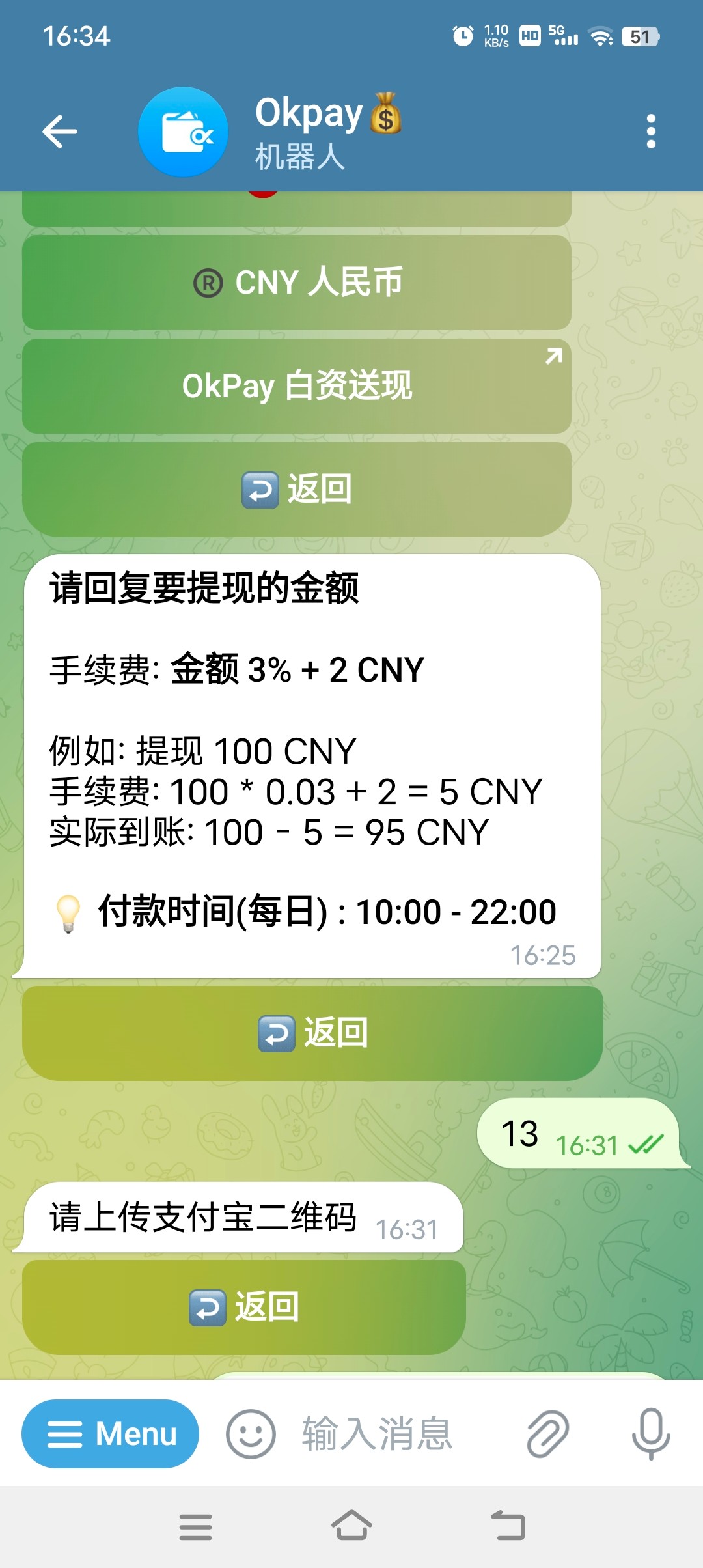 如果转到六,你可以转发回去给这个机器人,它就得6块钱了