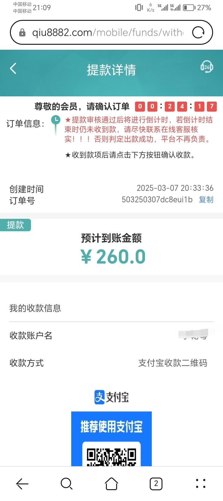 18打到379提现一个小时还没到账,是不是被黑了啊