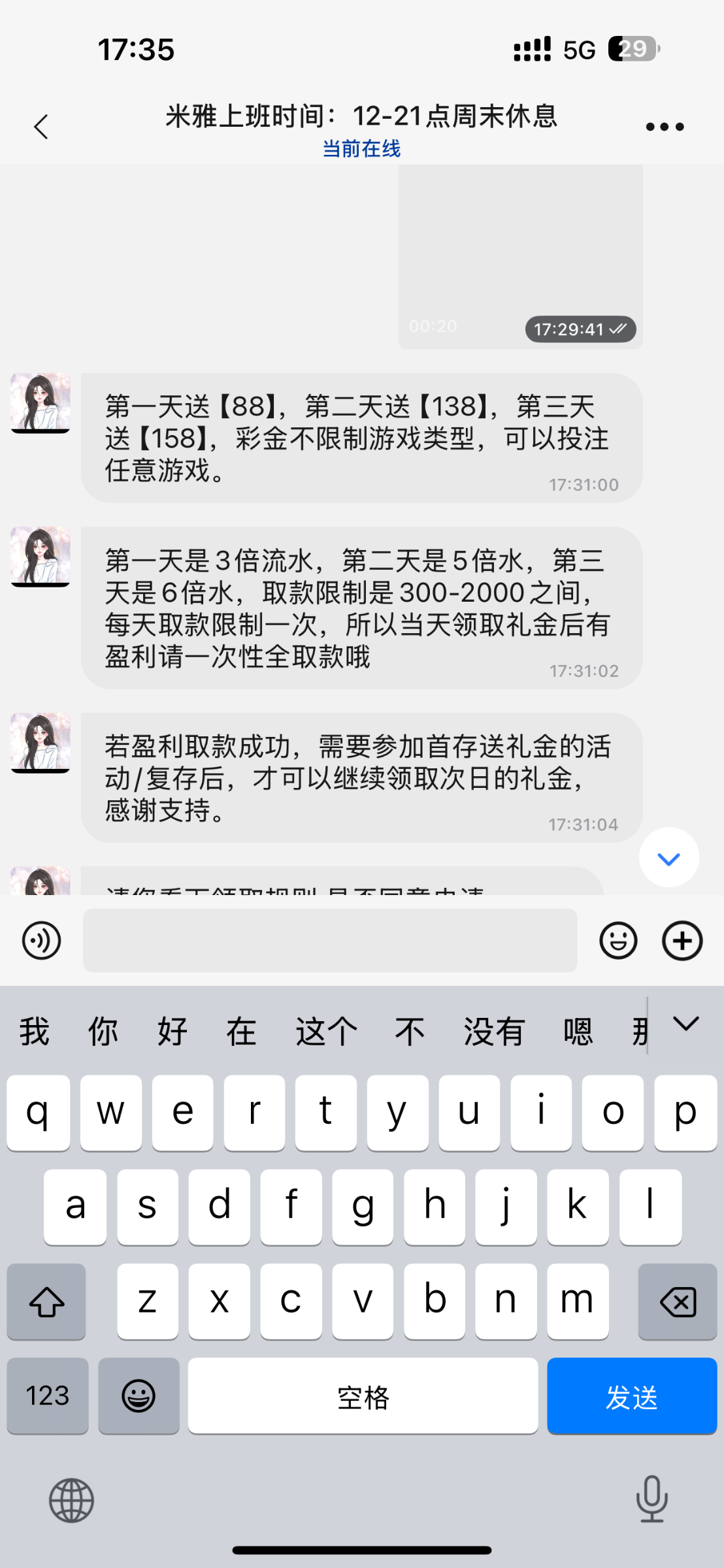 前几天来电话加了旺旺以为老号不送就没管,刚刚去弄给了88
