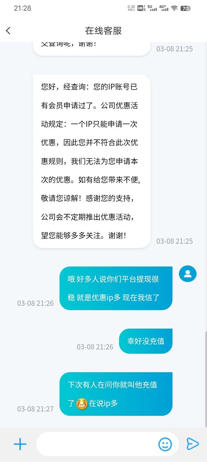 后面的不要去了,开始黑了,充100打以小博大,说多ip  裸打到350提款说我恶意套利,用支付宝充的,一分彩金没有送给我,罚10倍流水,笑死了