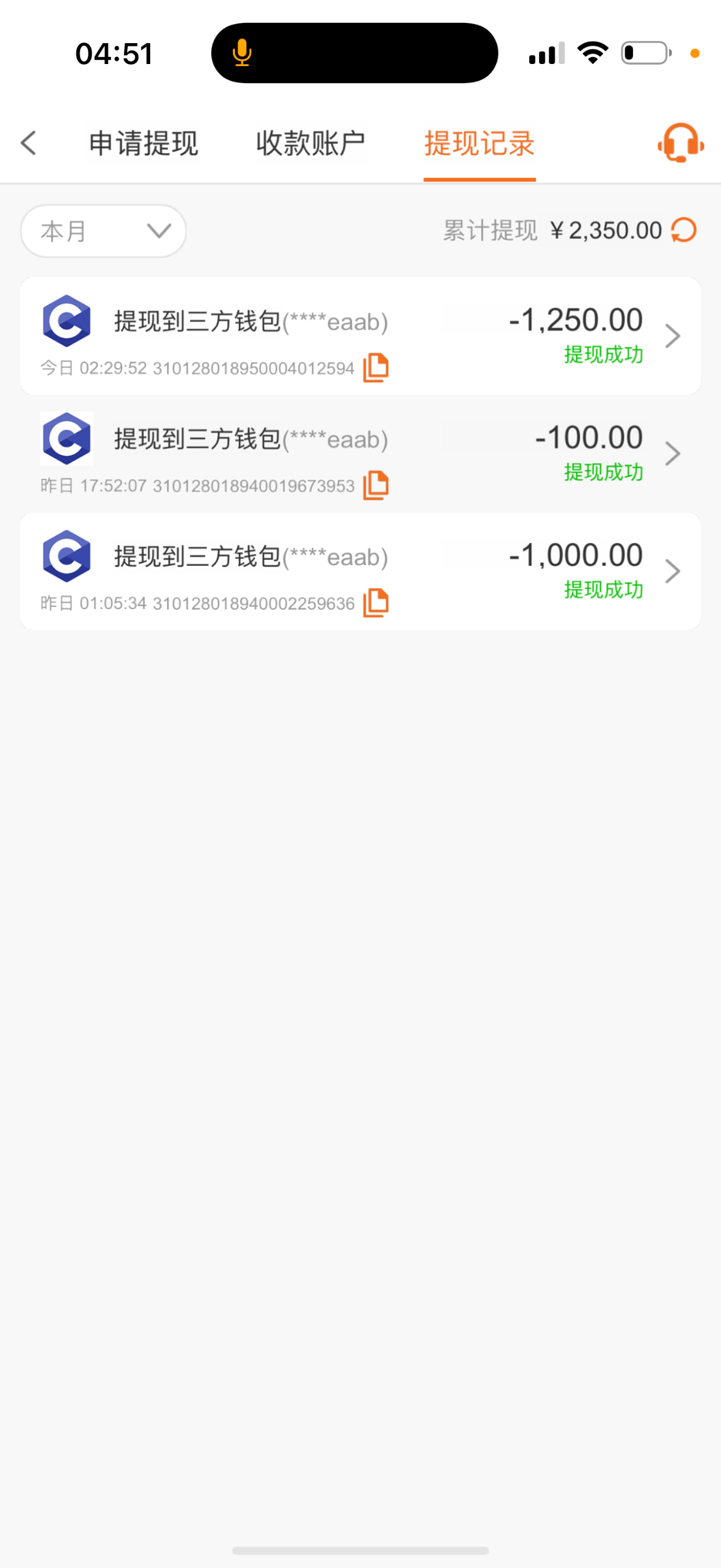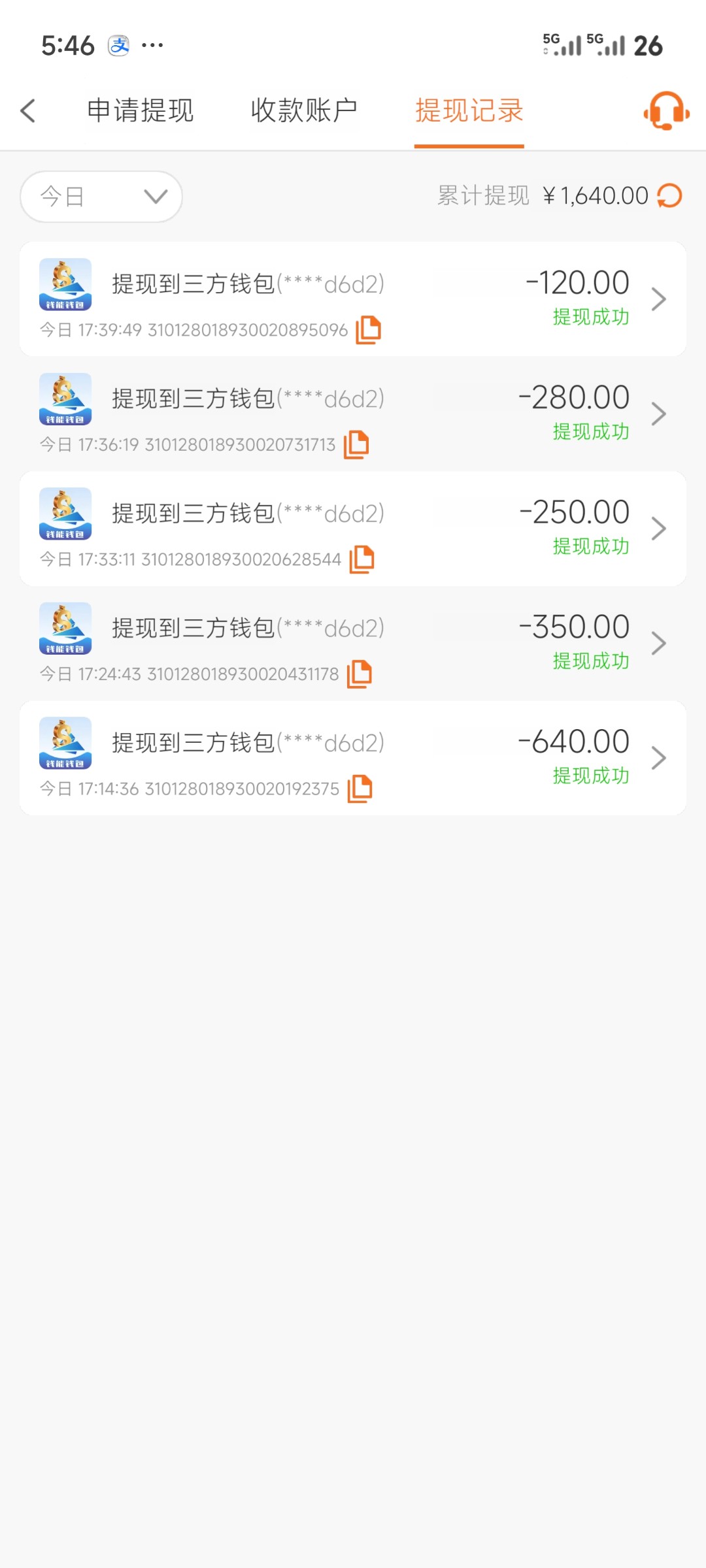 申请多IP,提现现在还没到账一个小时了