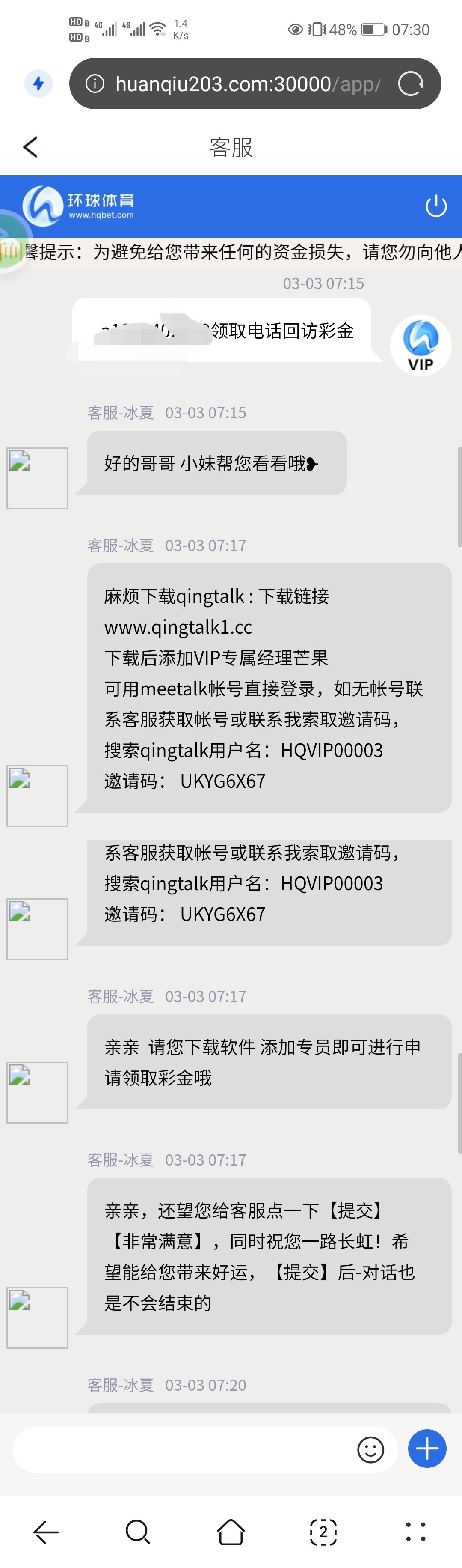 联系在线客服,申请电话回访彩金,然后下载Qingtalk app,找专员申请即可,她会发来一张图片有好多种倍数流水彩金供你选择 官网:www.hqbet.com