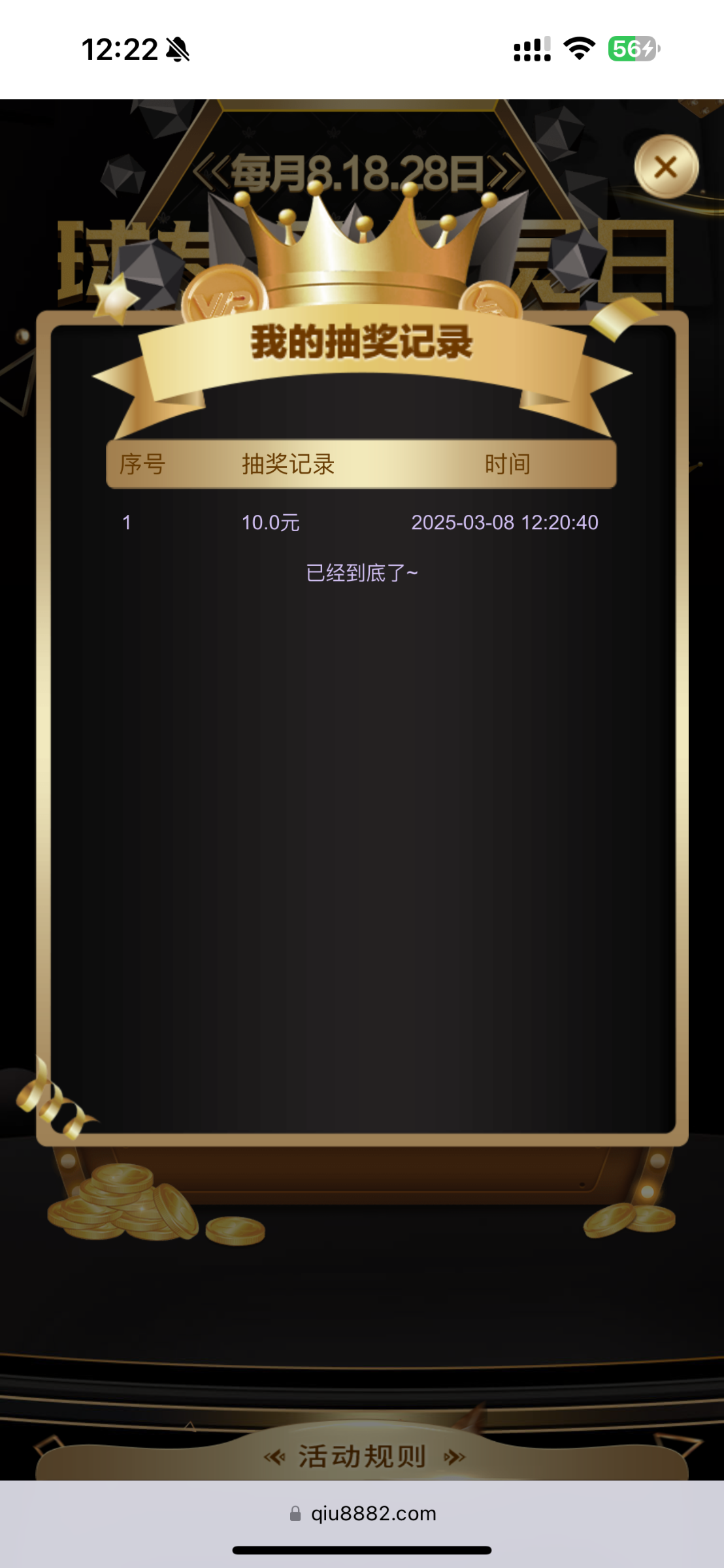 参加过10+68的都可以抽,只能今天,看到帖子快上,网址https://qiu8882.com/mobile/index.jsp