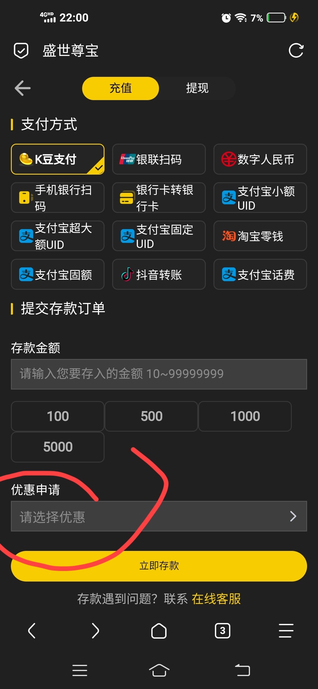 各位老铁们反馈来了,我充值100,冲不冲你们自己掂量着来,如果你充值一点点参加首存活动,这个平台彩金自动送的。看以下图片