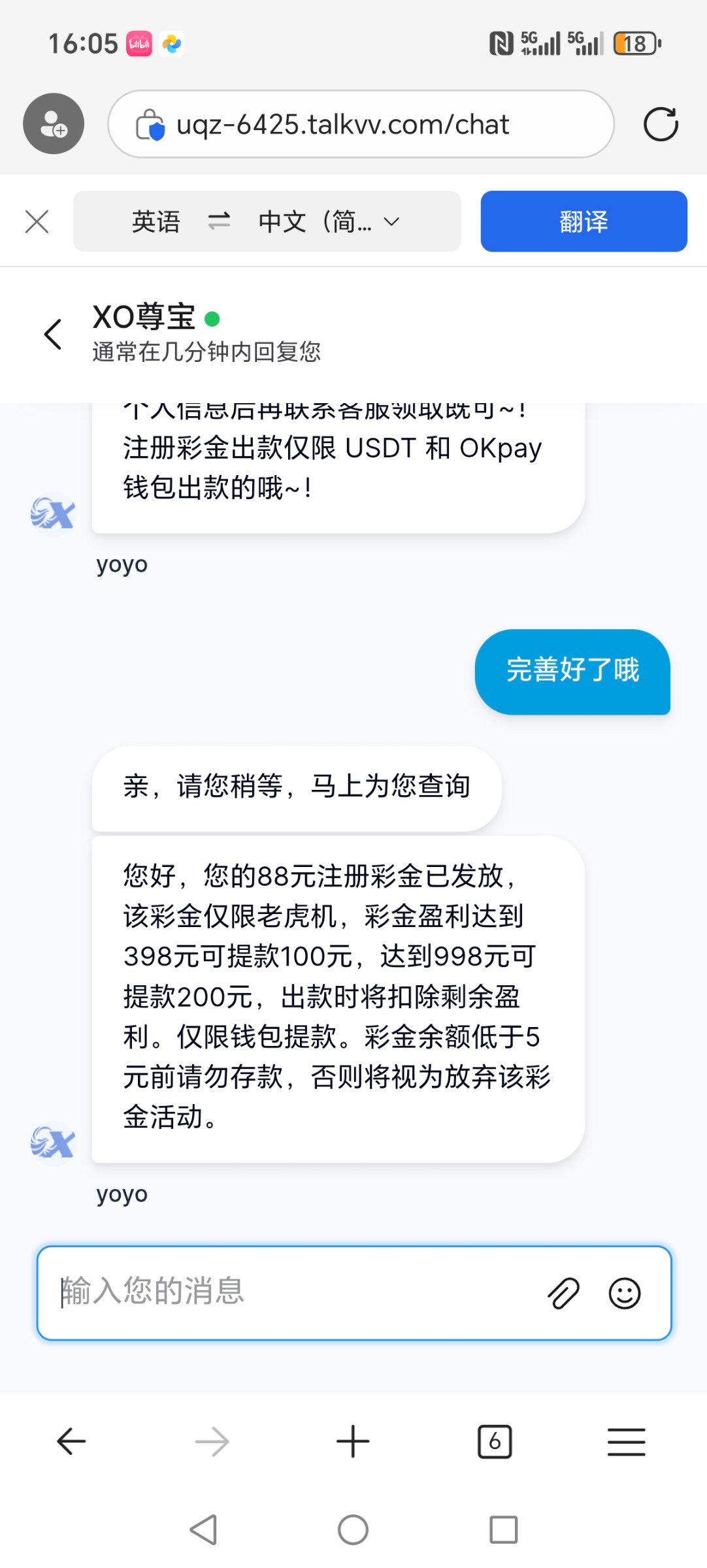 不好意思,搞错了,提了100到了,是打到398提100打到998提两百,我全部提就一直退回,客服也不理人。后面提一百到了,本来打到一千多。可惜了,不是特邀也送,我碰瓷的,进去麻将2一直进胡,故意放水