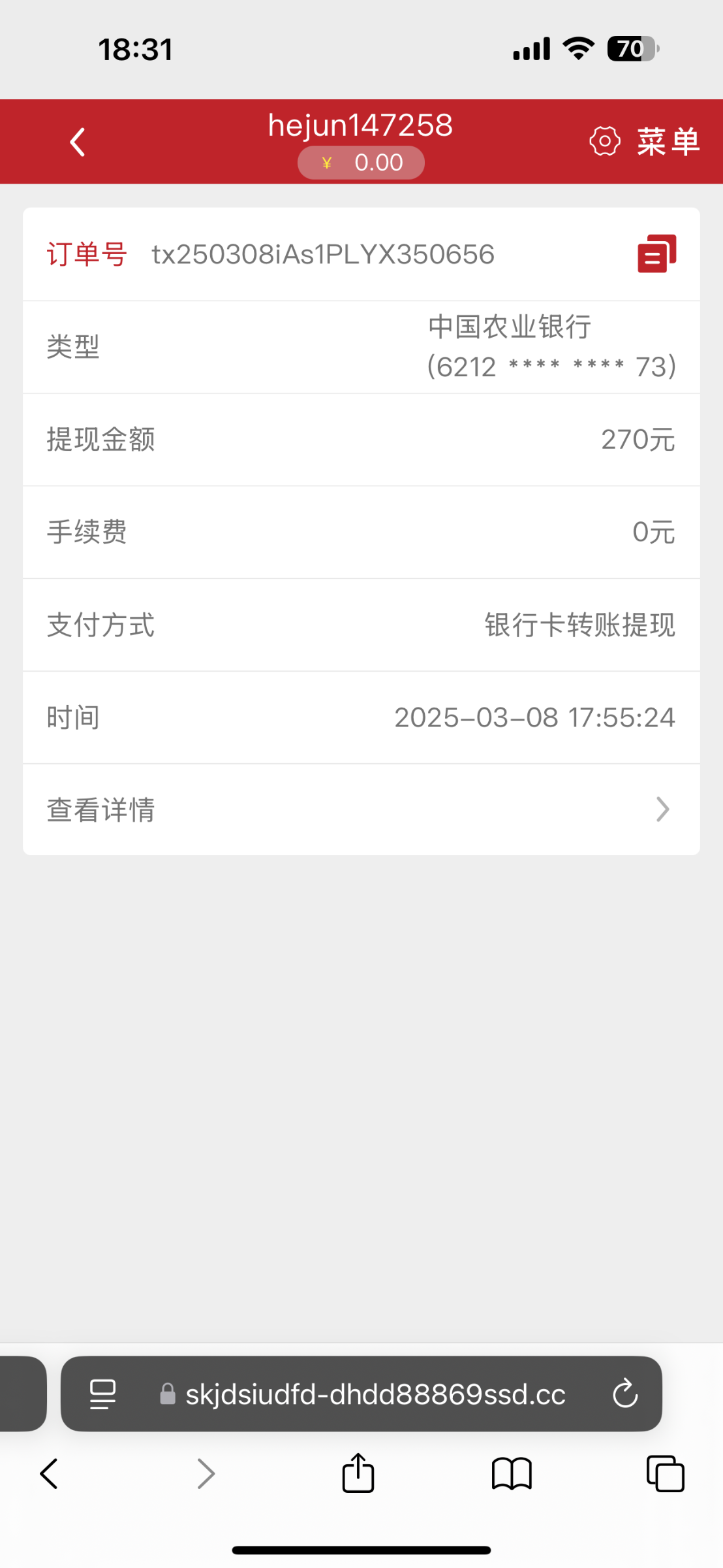 这个平台黑平台,308元都黑,而且充值过钱的,大家避坑!/提现一分钟拉黑