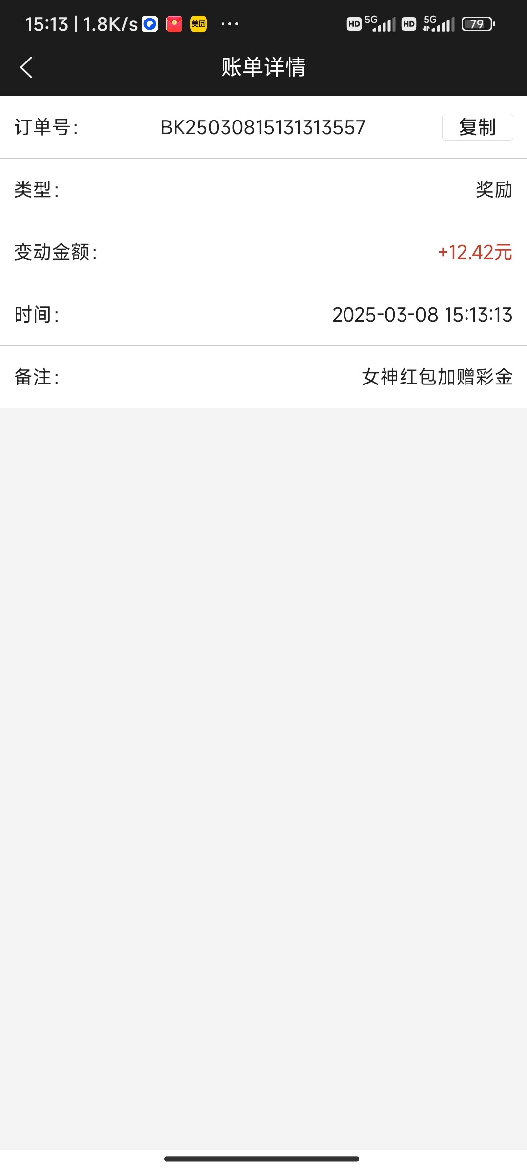 永利高8尾数加赠是乘以十倍 减去你抢的红包金额来派送的,不是直接送你十倍金额,所以楼主送了12.42,他应该抢了1.38,送13.8-1.38=12.42