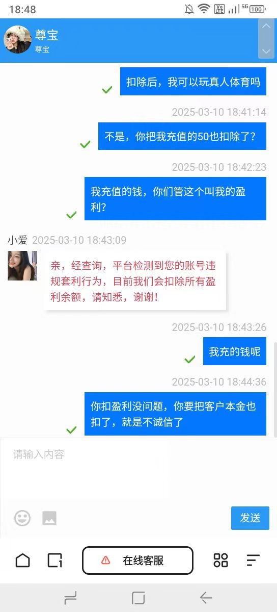 充50送54打了 不给提 客服装死