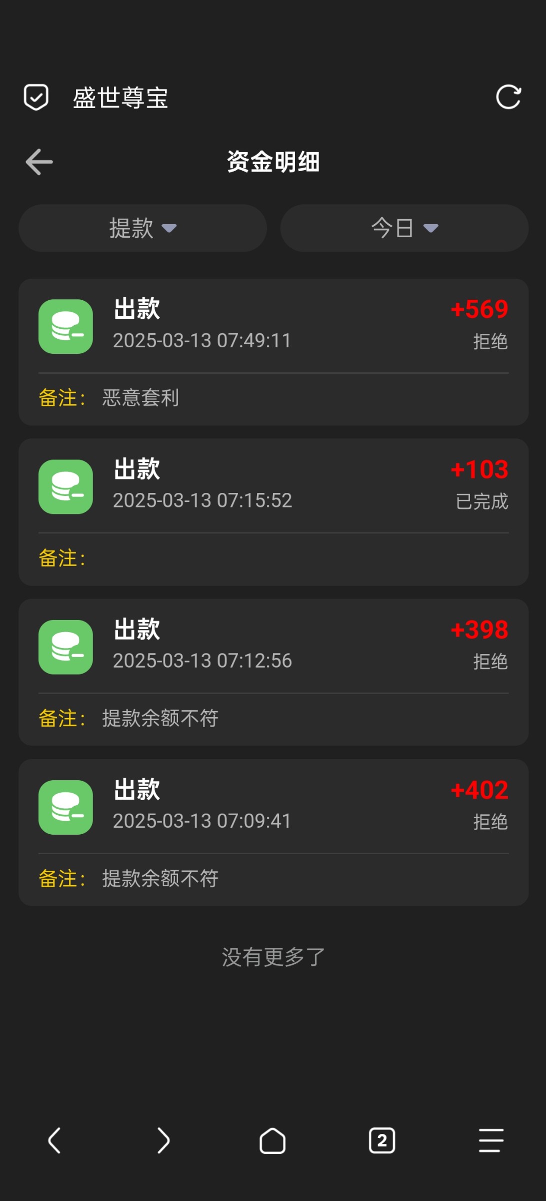 我充170打到713提了两次退回然后提了100也退回来了客服也没人不敢再提怕把余额整没了