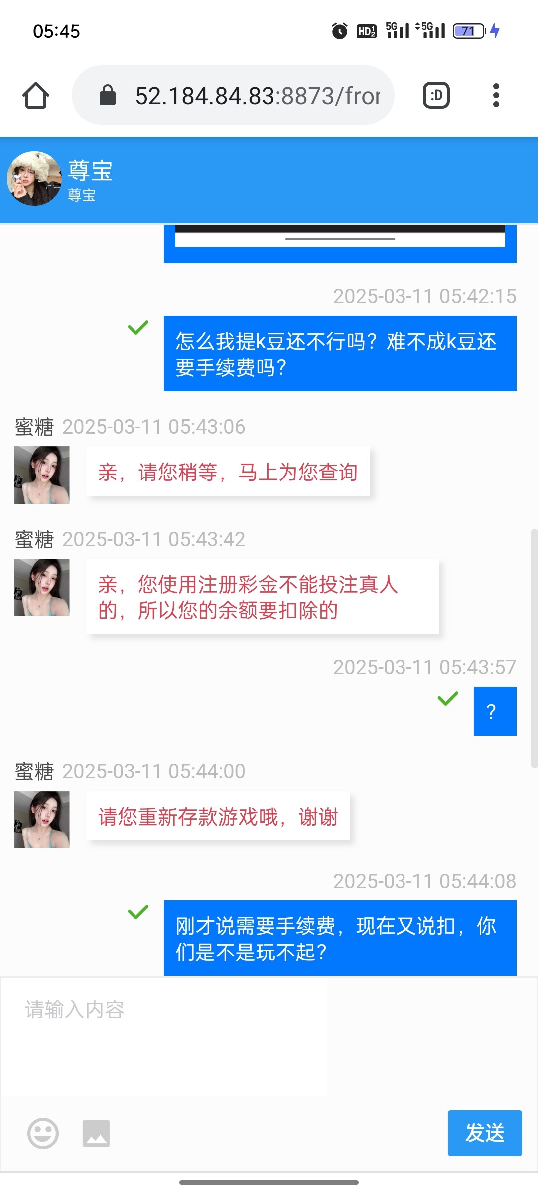 @kay ,你鸡巴是疯了吧别人都七八百都黑你提1个 妈的 不会藏几十个免费 输到几百再一点一点提啊 这样跟你出了 真的 你当庄 你都不会给出