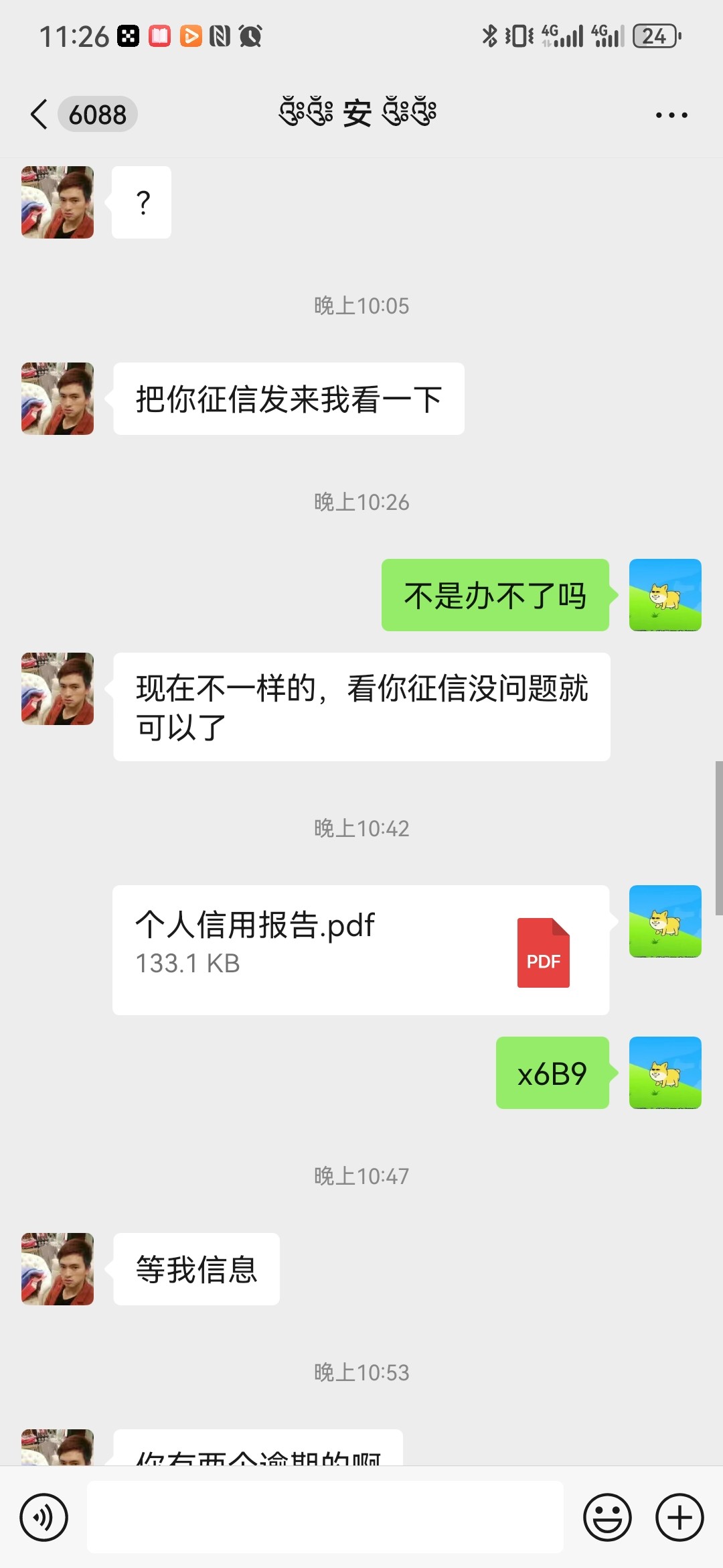 这段时间他联系去办背债人,今天把征信报告给他了,说可以办就给我卖飞机票,路上用的钱,去武汉办