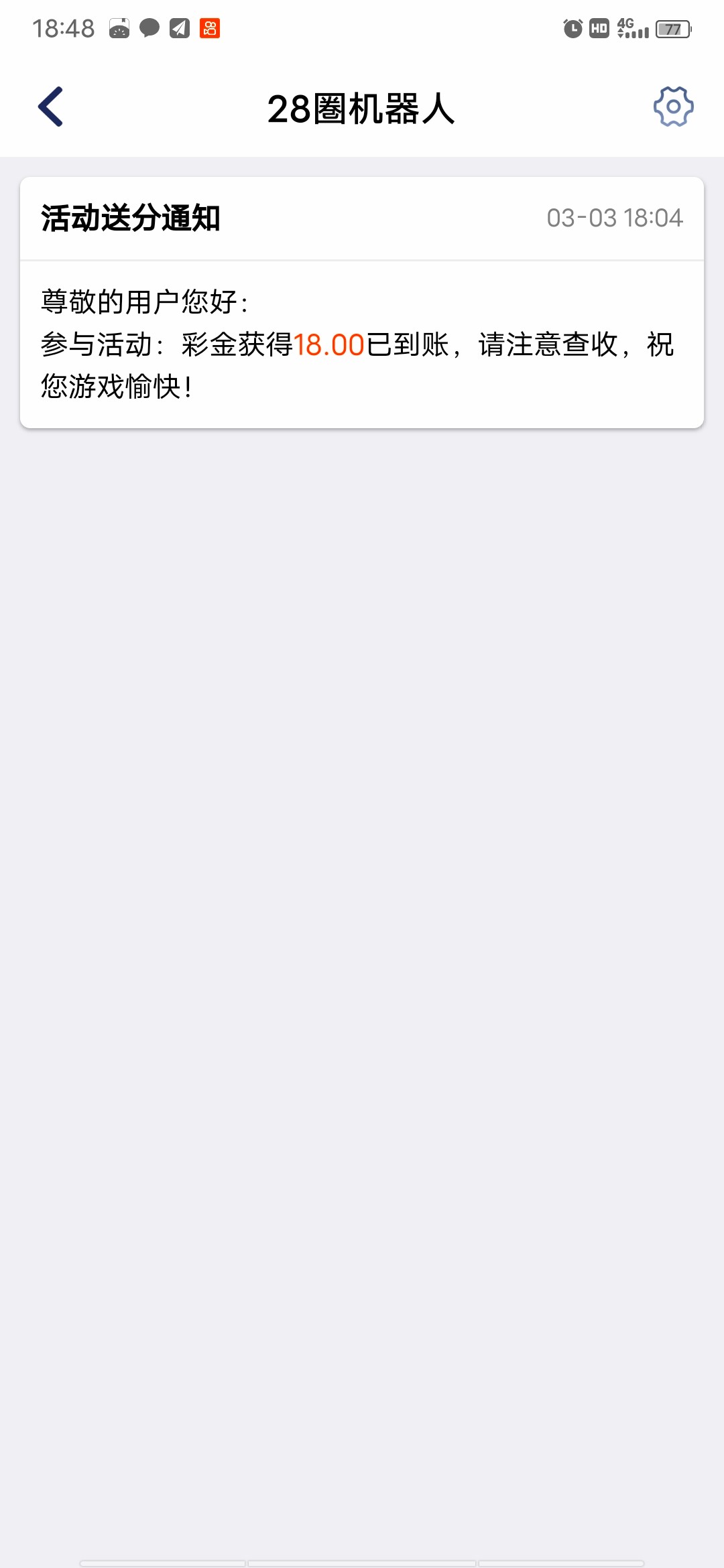 统一回复,有回复+但是今天没有到的,就是前几天不是有搞随机抽的抽奖吗,那个和这个一样的,前几天处理的,没法在重复领,这个是新用户注册送,只能领一次