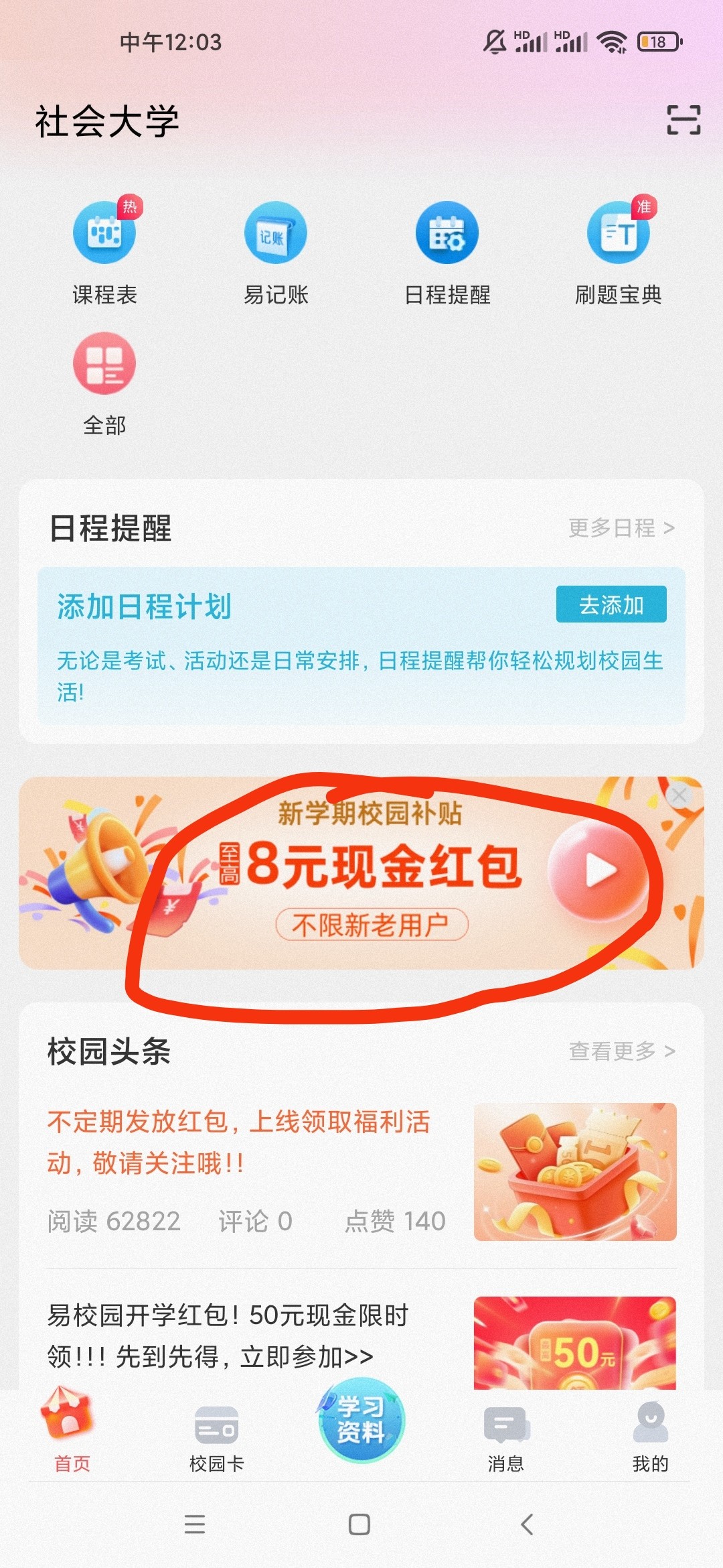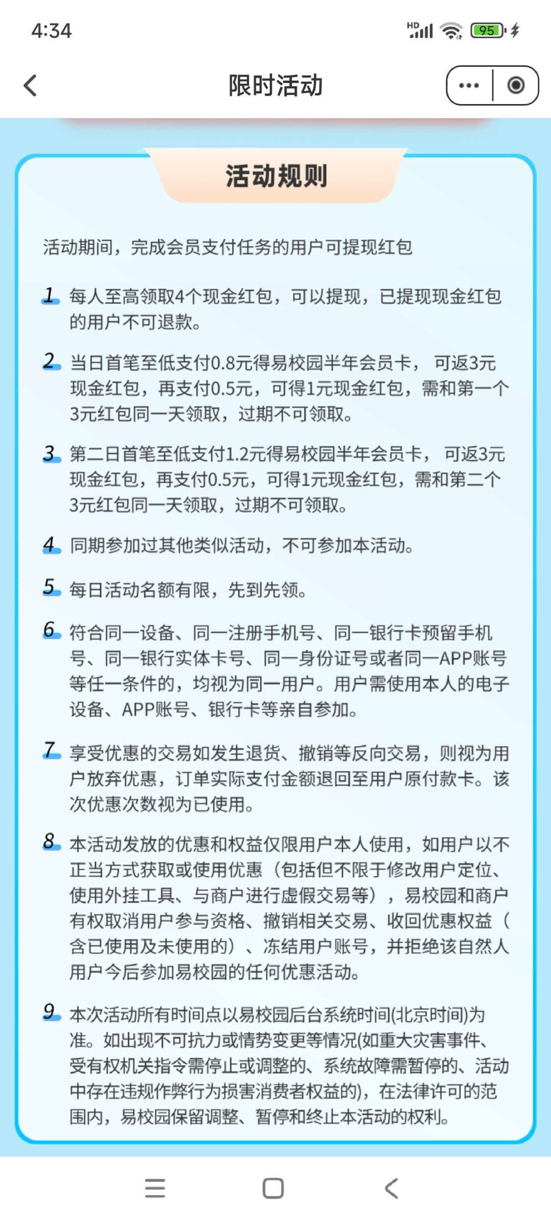 易校园新一期的活动,不论新老用户都有8元。第一天4元第二天再4元。需要先银行卡付个1块然后直接提现到微信