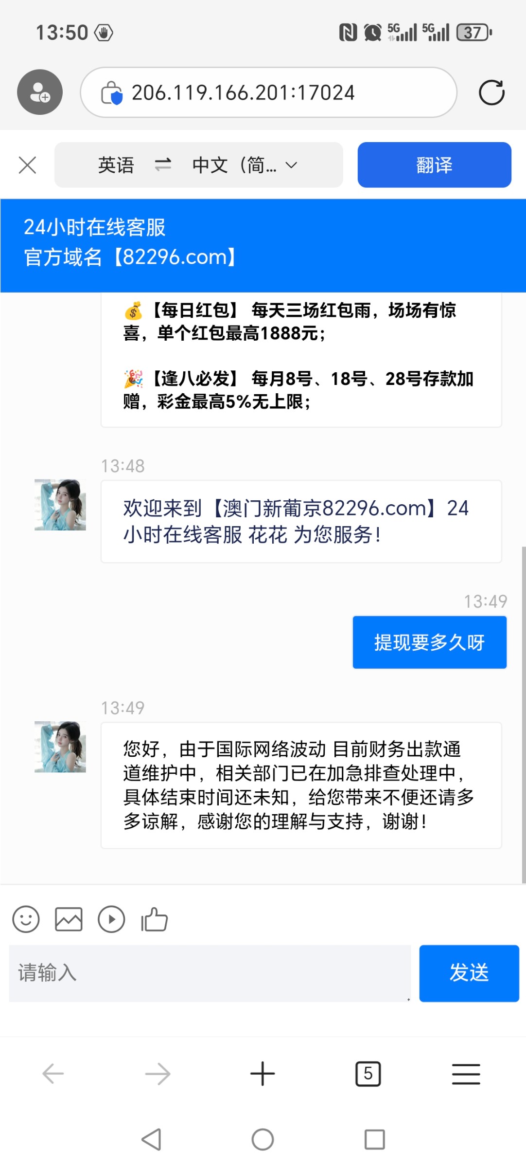 7024新葡京打电话来100送了56一直暴到1500不敢打了提现500半小时了