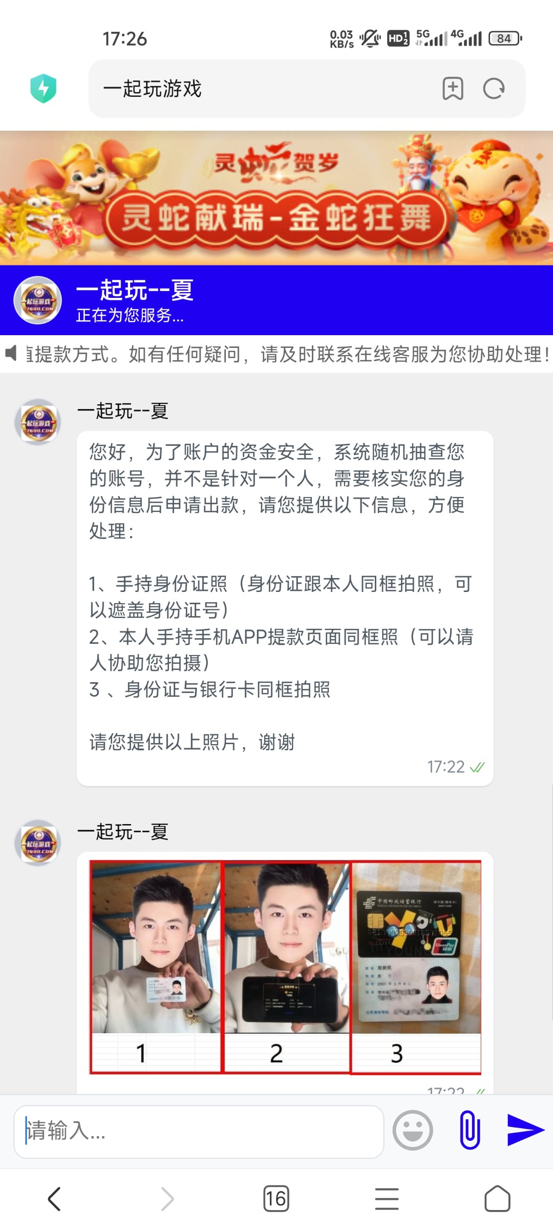 黑平台提现的时候叫手持身份证和银行卡给他,直接封号