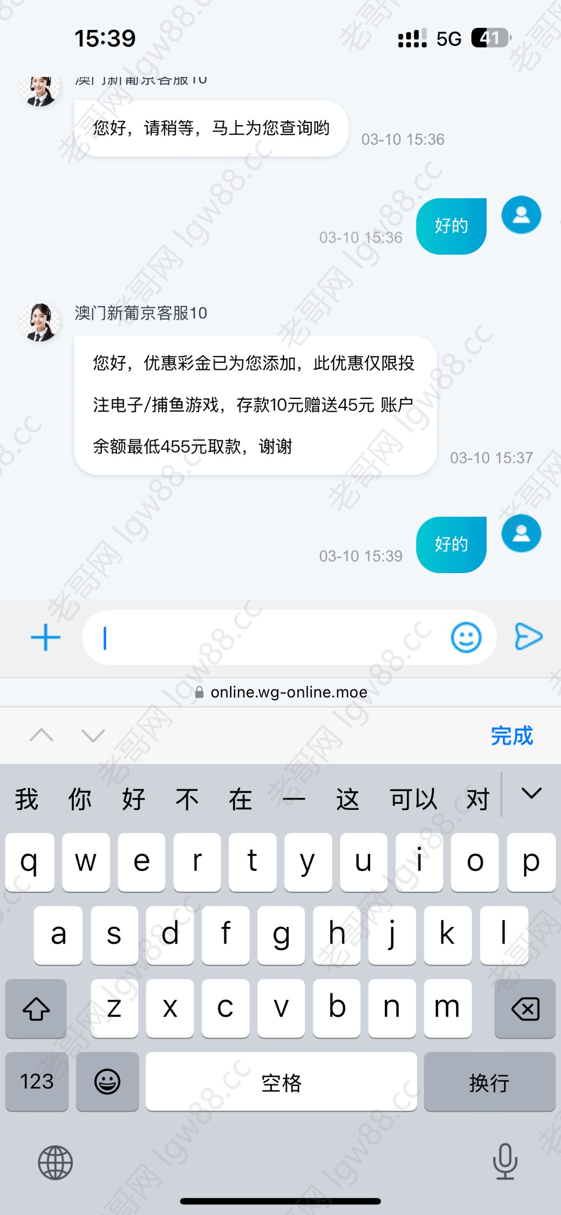 去找客服申请电话彩金 有的直接送88 或者45 充值10领45 地址 455.com