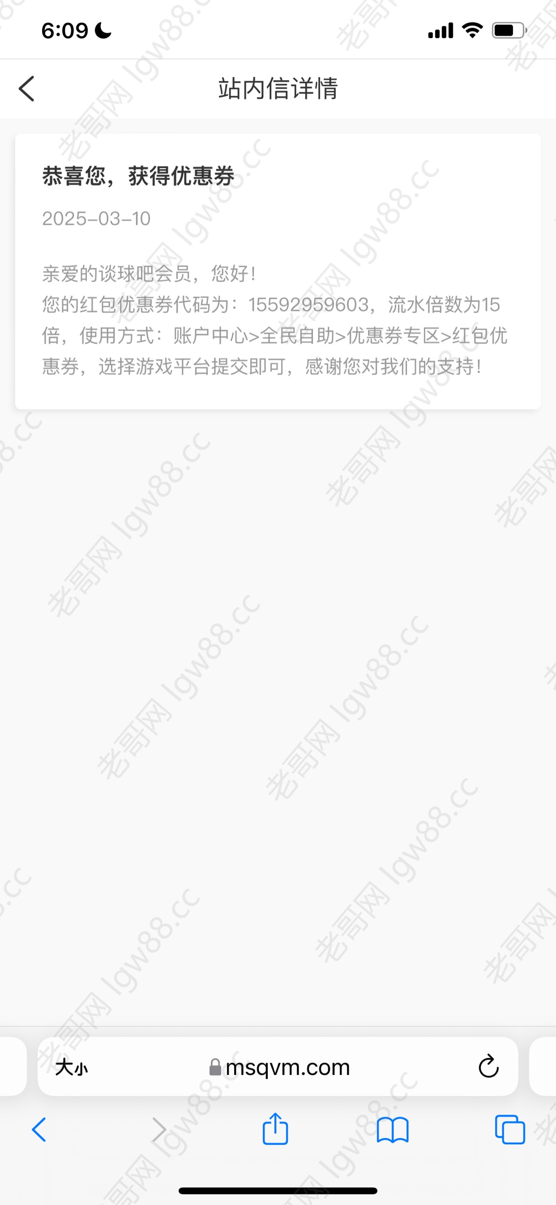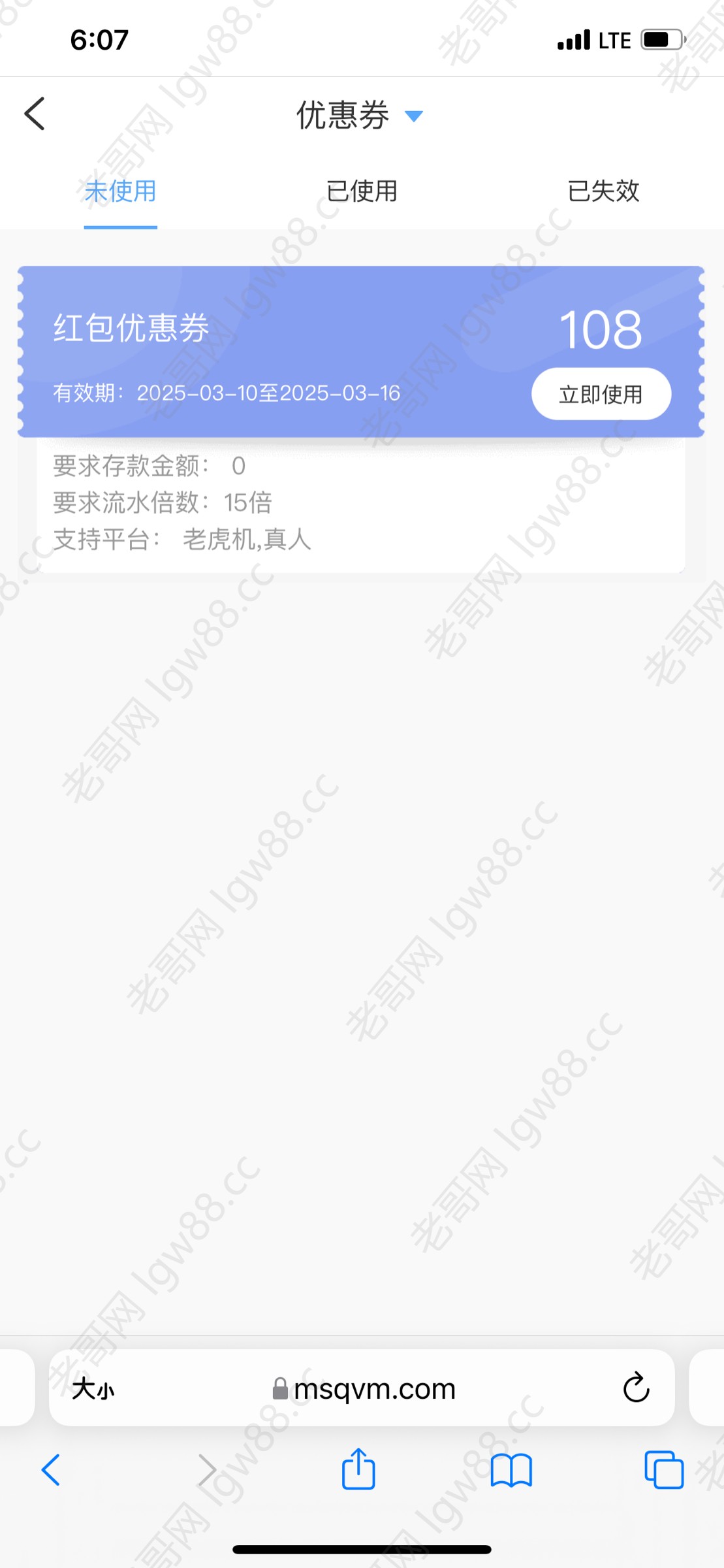 收到短信彩金,优惠券日期是今天刚发的,不知道是不是每个人都有,有账号的老哥去看看,没账号的老哥也可以去碰一下,我跟我朋友两个号都发了,没有无视即可!