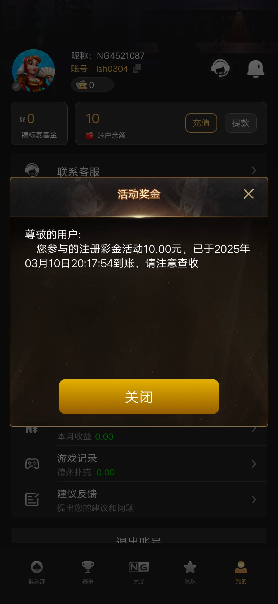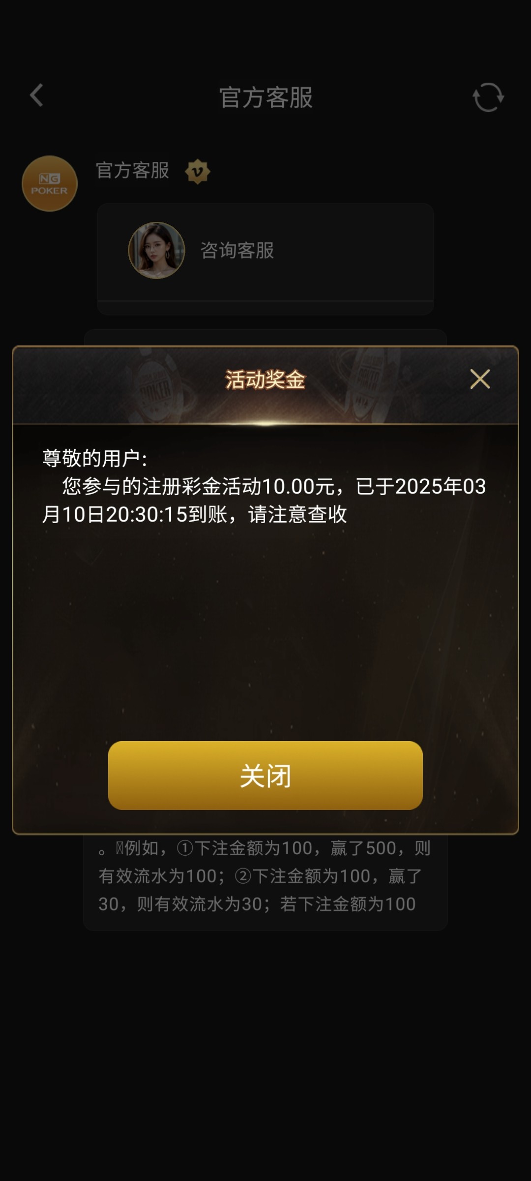 只限十号以后注册的玩家,找在线客服领取,地址 ngc0.cc 客服问来源的话,保存图片给他不要直接截图带论坛的,具体要自测