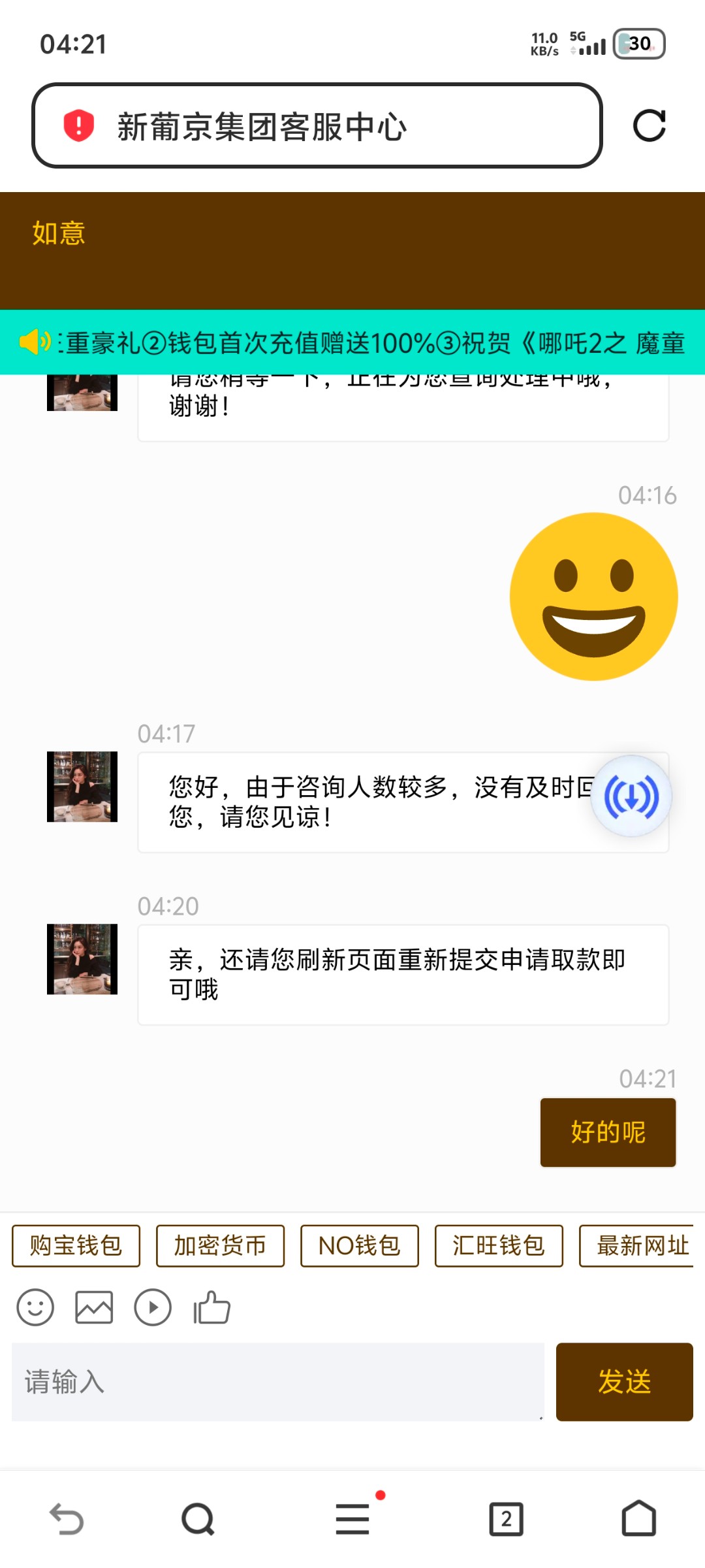 这台子之前2k过了三关,提u被退回来,非要让我去pg打10倍流水,后面就去随便玩了一会输到14000提钱包两分钟到账