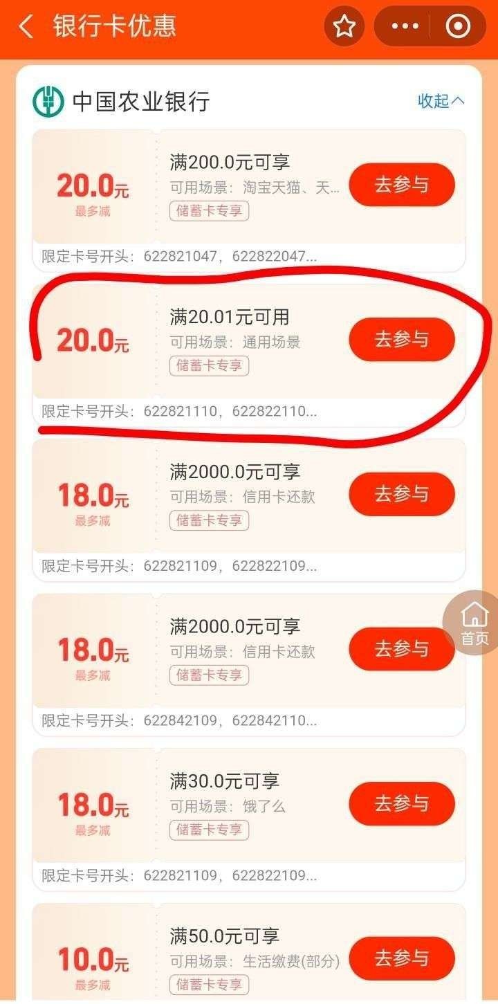 【农行白嫖20立减】