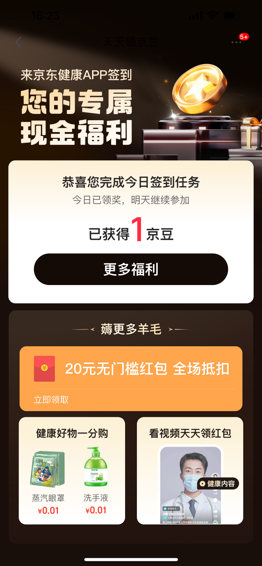 2K想吃肉 ▶ 一分都不充了 你得去京东健康签到一下就可以领了 10月前