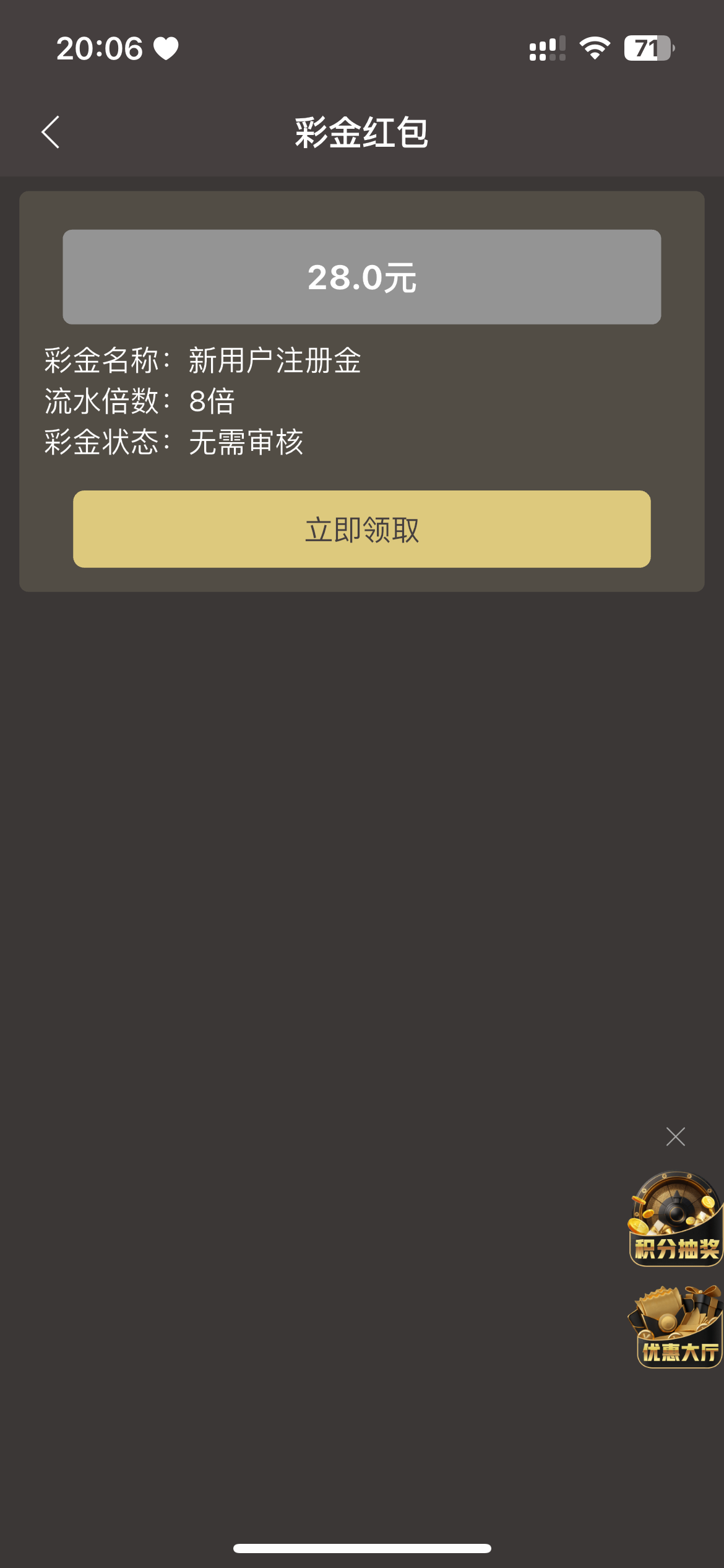 ✅已经处理200个名额批量派发了,到优惠大厅---彩金红包内点击领取。 如果有会员领取不了,就是系统判定多IP的(如图),祝领到的老哥们长虹了