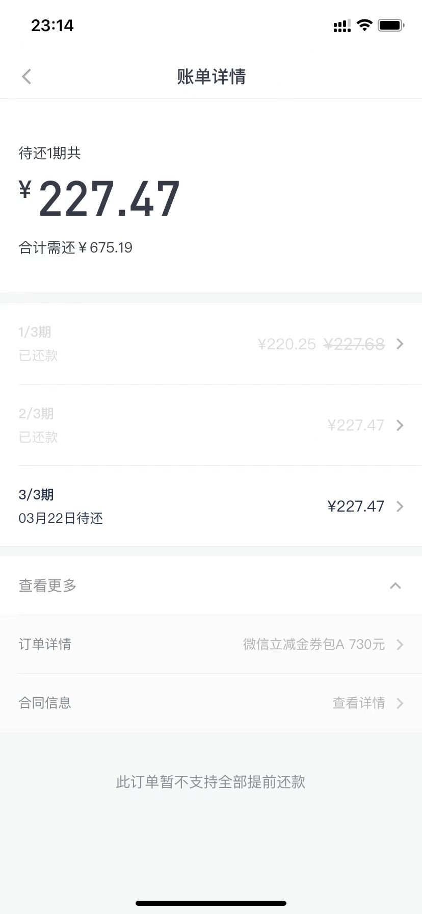 老哥们千万别用分期乐网贷购物额度 简直高炮中的高炮 送的优惠卷一点用都没有 千万不要去撸 高炮中的战斗机。借500 要还差不多670 还是分期3个月的。