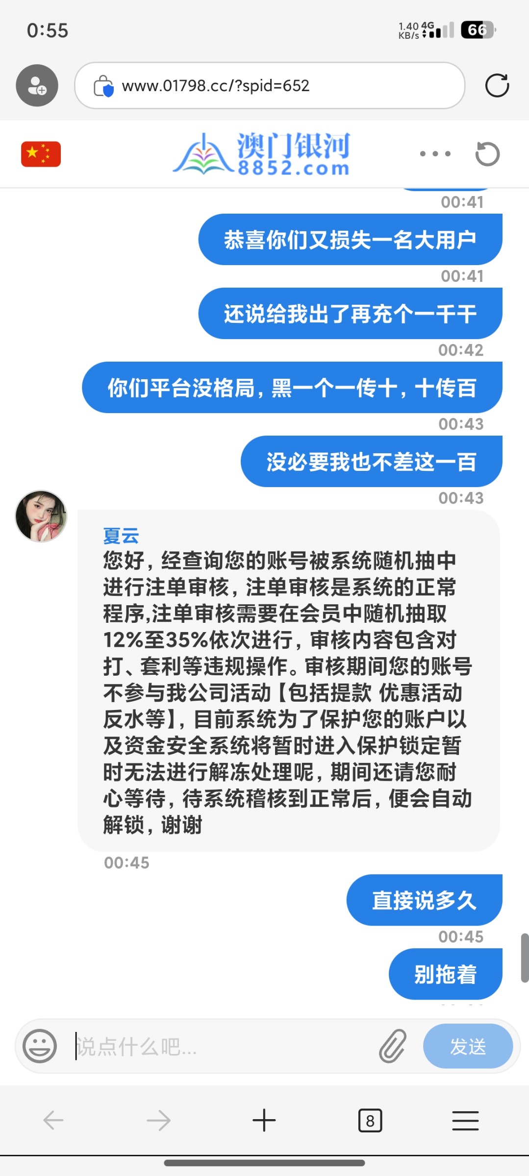 后续十倍水打完了直接说注单异常这煞笔台