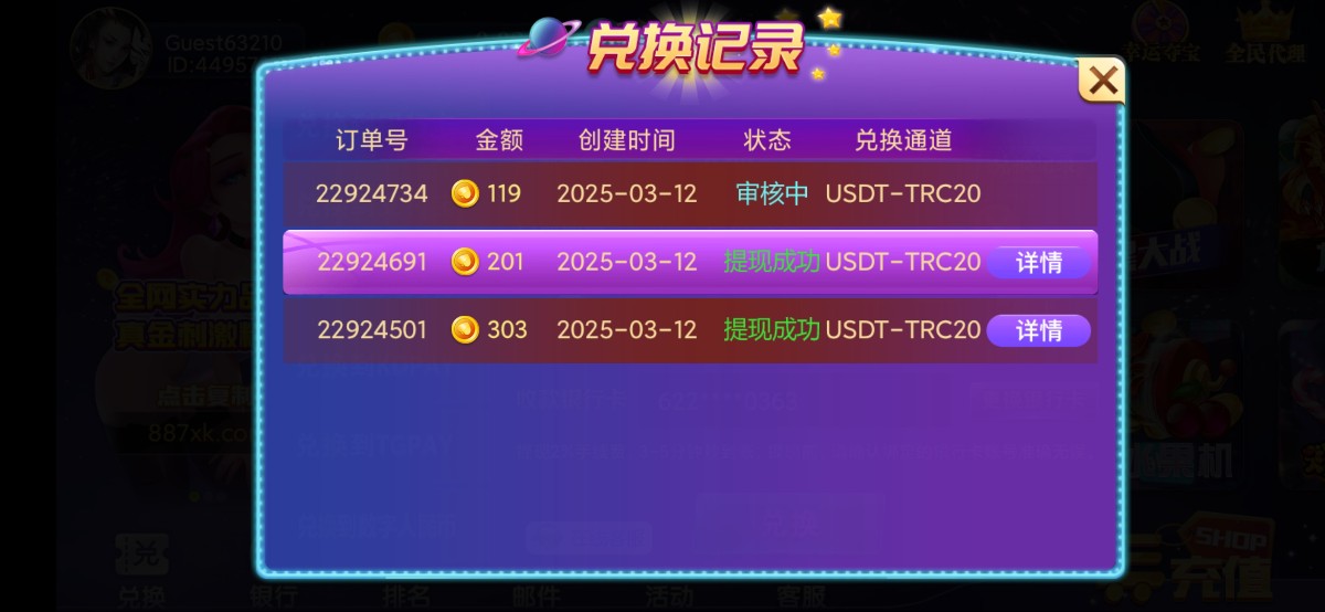 看到老哥帖子我就去看看自己的结果到了,白嫖600。下了300剩5快打出来了 数字人民币通道 台子名字叫做 星空娱乐棋牌台 地址 887xk.com