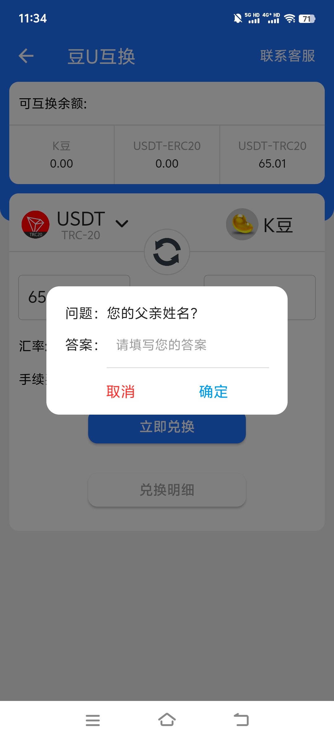 第一次用这个k豆的U地址收款,一共70u收完钱以后发现换成k豆或者u转账需要验证安全答案问题,两三年前设置的早就忘记了,客服只跟我说没有一点办法,要么重置全部清零 要么自己想,我试了好几天压根想不起来,救助各位老哥有没有别的办法,只要能拿出来就行,对半分没问题