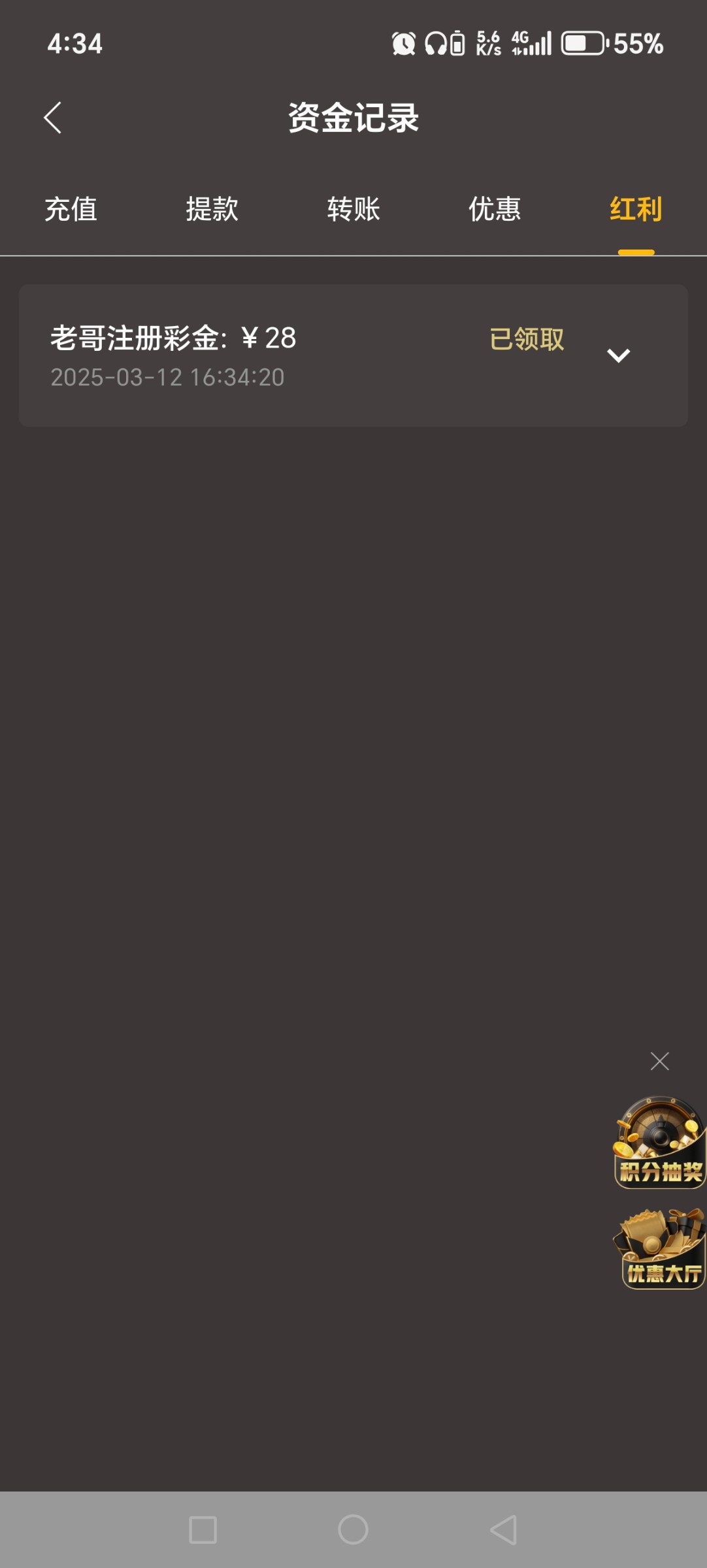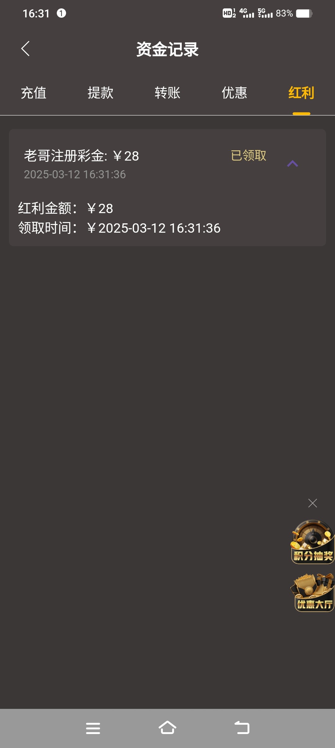 谢谢领到了,打了三十多流水