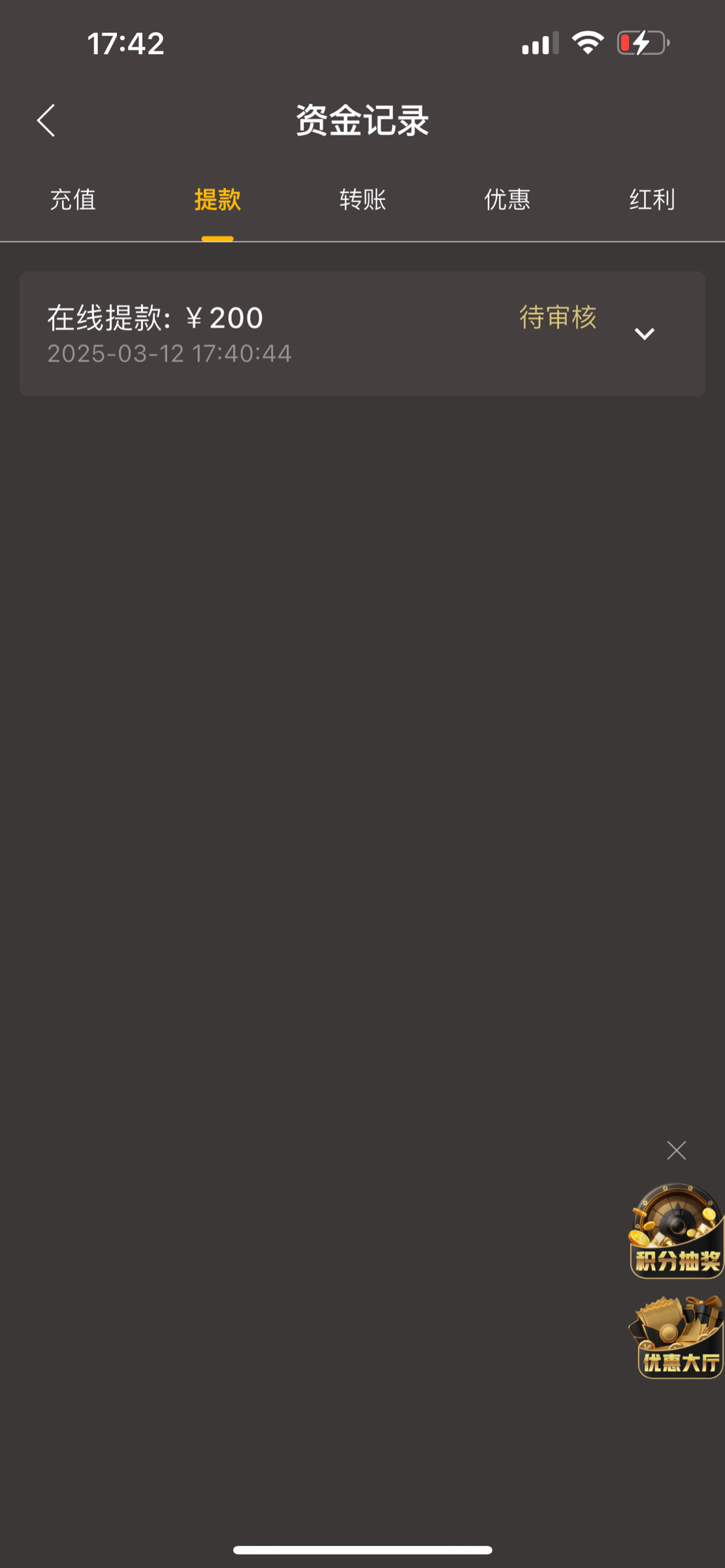 充值100输了,领了28的彩金打到200多。。