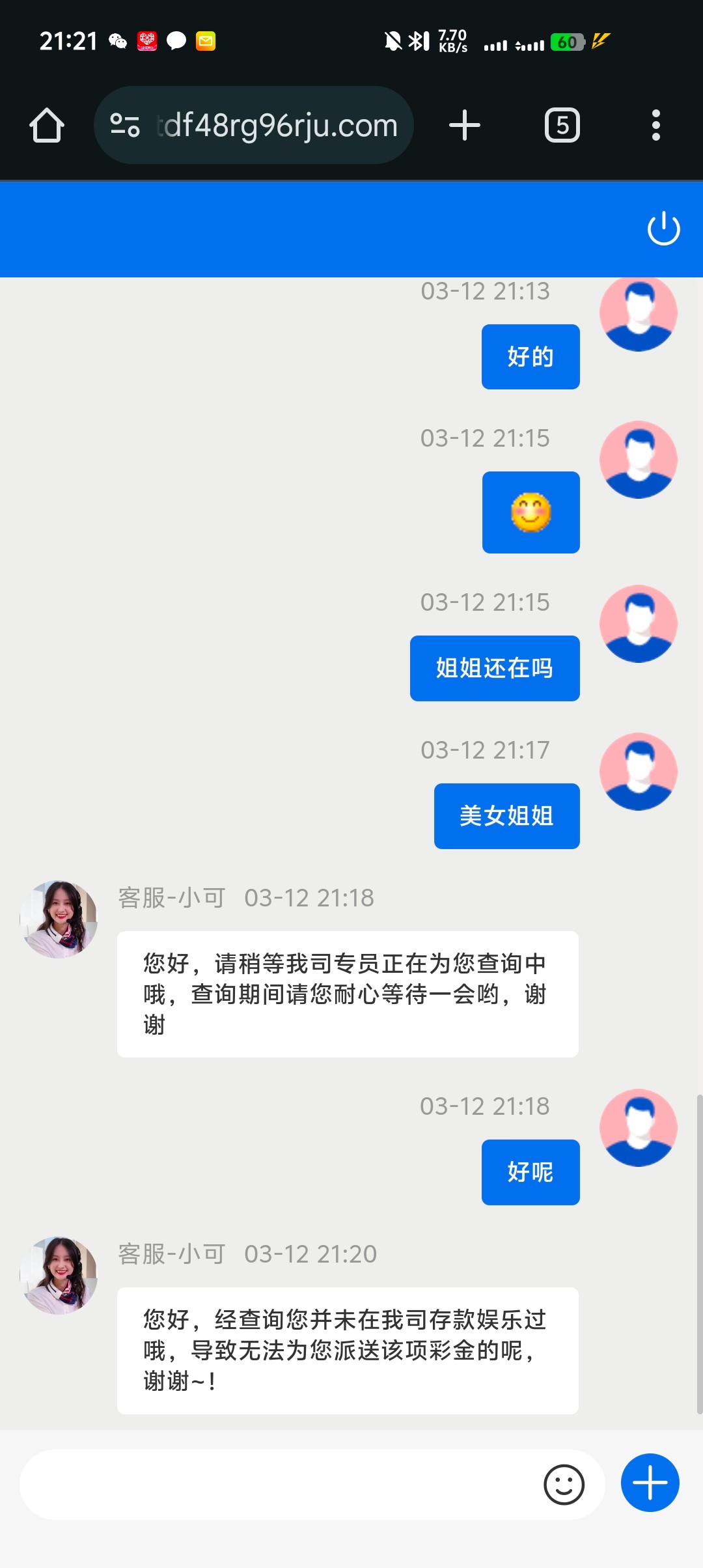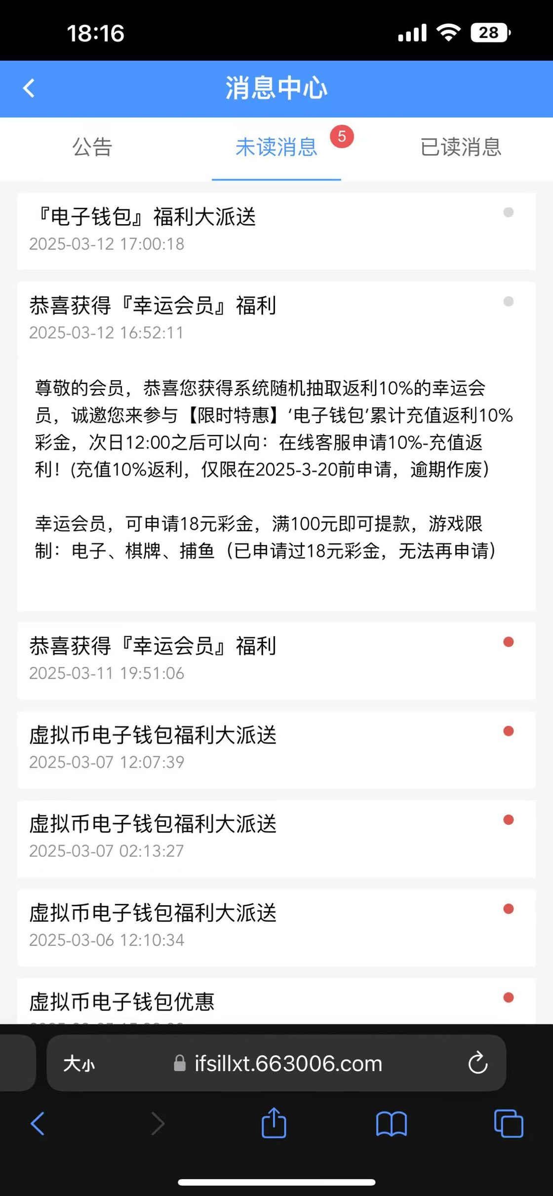 小蓝台3006有这条站内信的找客服申请18幸运会员彩金,我没打出来,不知道黑不黑,小蓝台大家都知道的,别充就行 地址3006.com