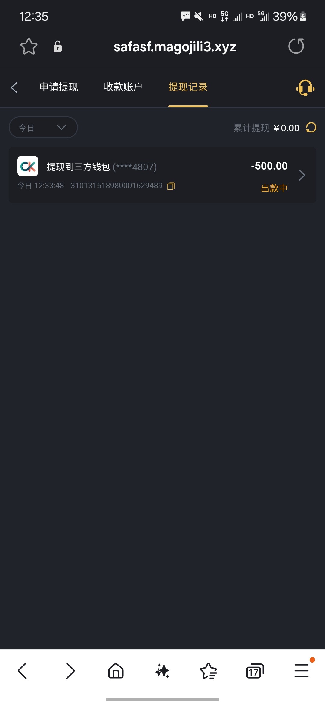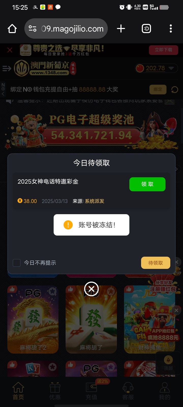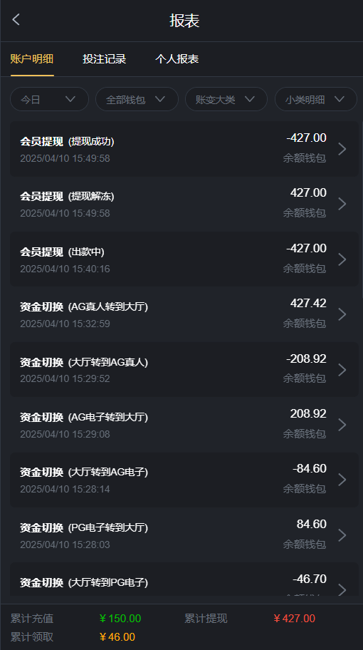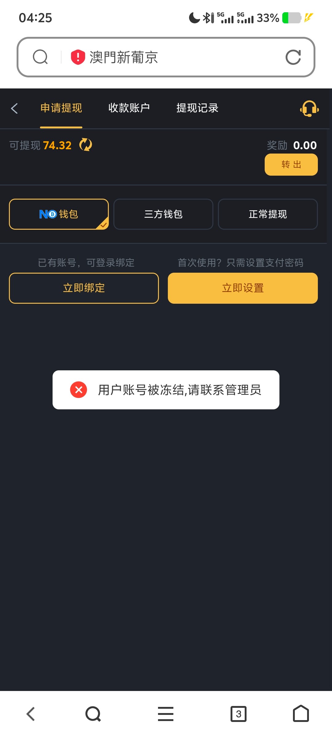 黑台一个一共充100大了半天赢了280提现直接冻结,彩金都没有转出来