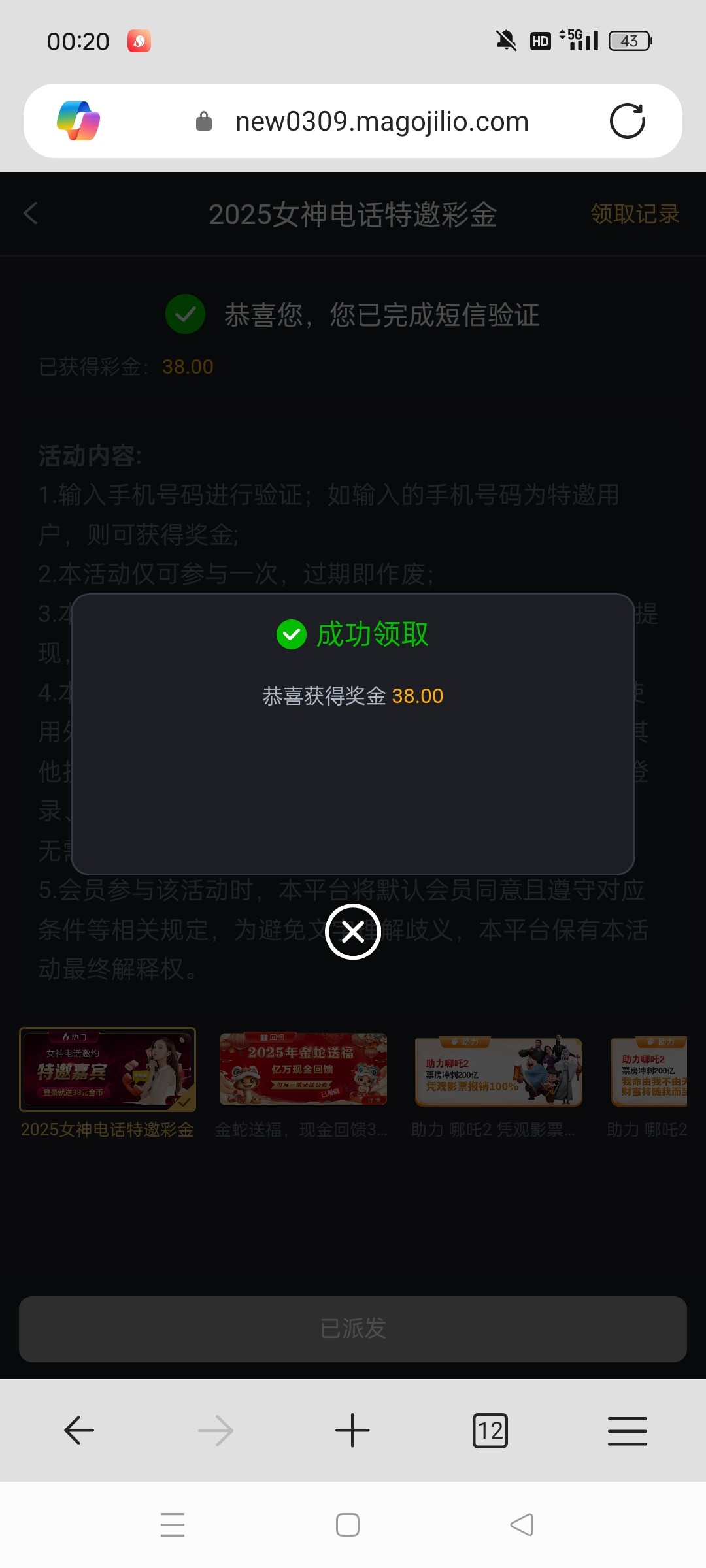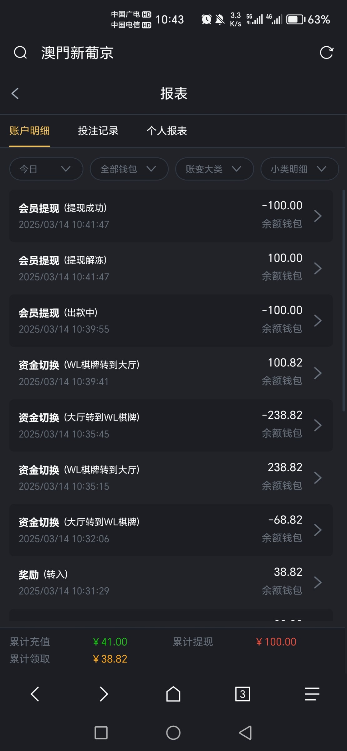 彩金额度是锁着的 好像是打够38流水 或者是存38 才能正常转出来