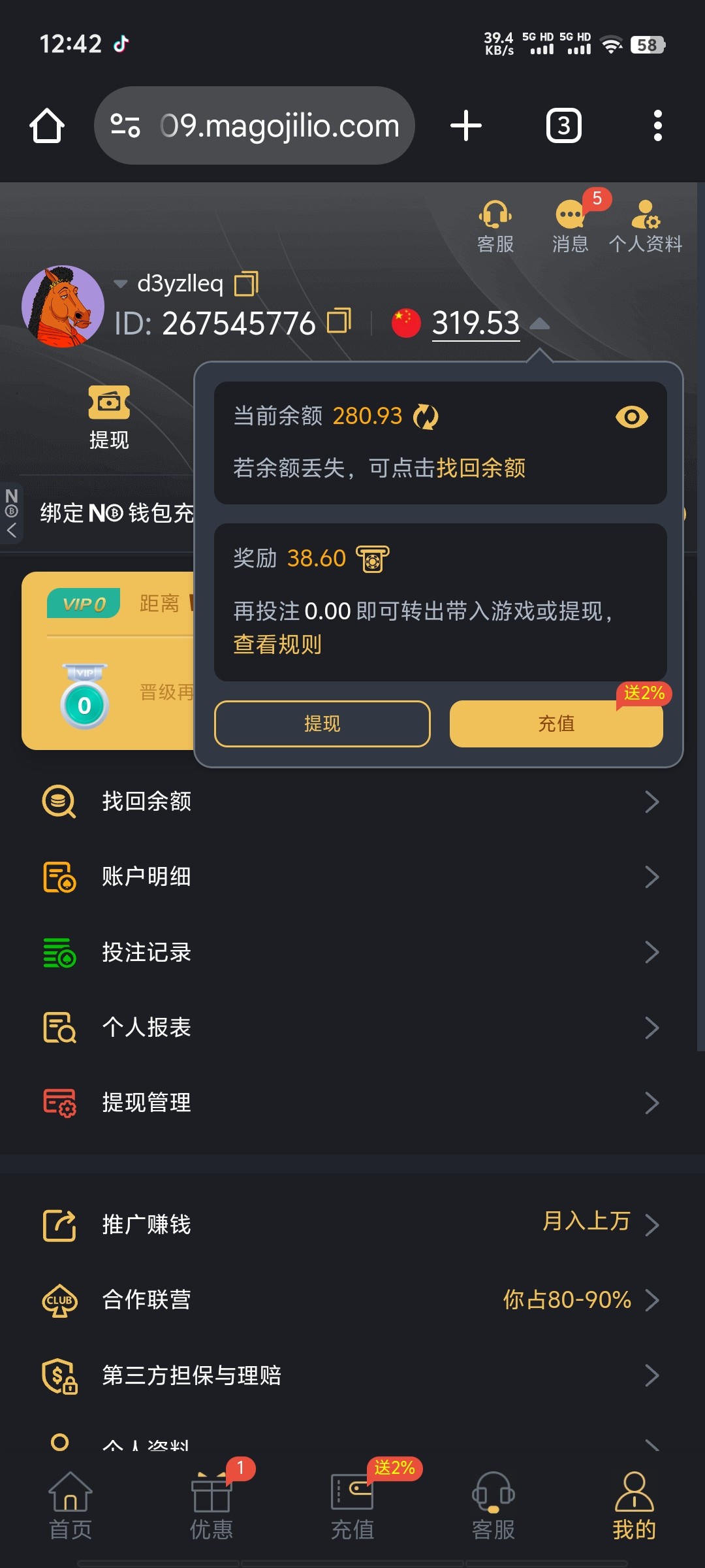补充一下,这个38,需要充值,打38的的流水才能玩这个送的38,平台最低充值10,大家自己研究下,我也是刚问客服