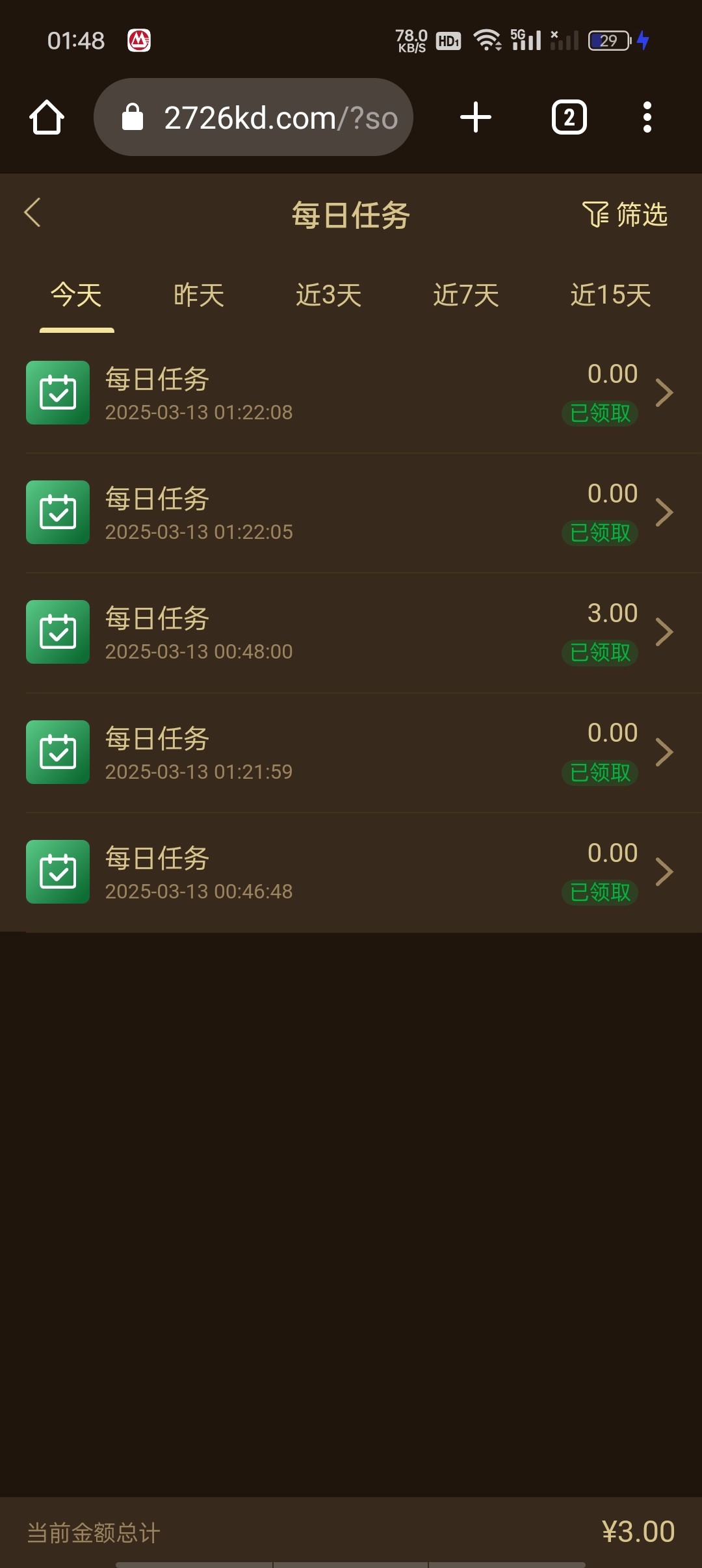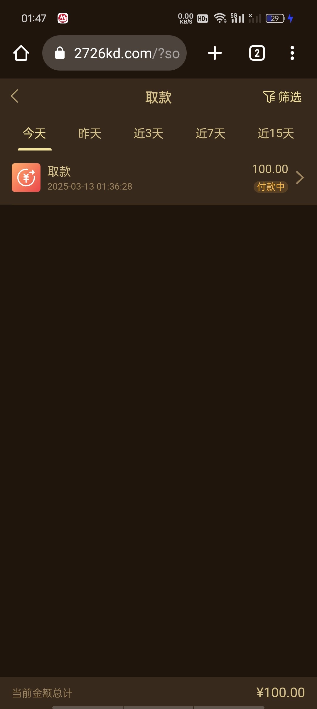 三块提100 又领了26 打到200 出款中